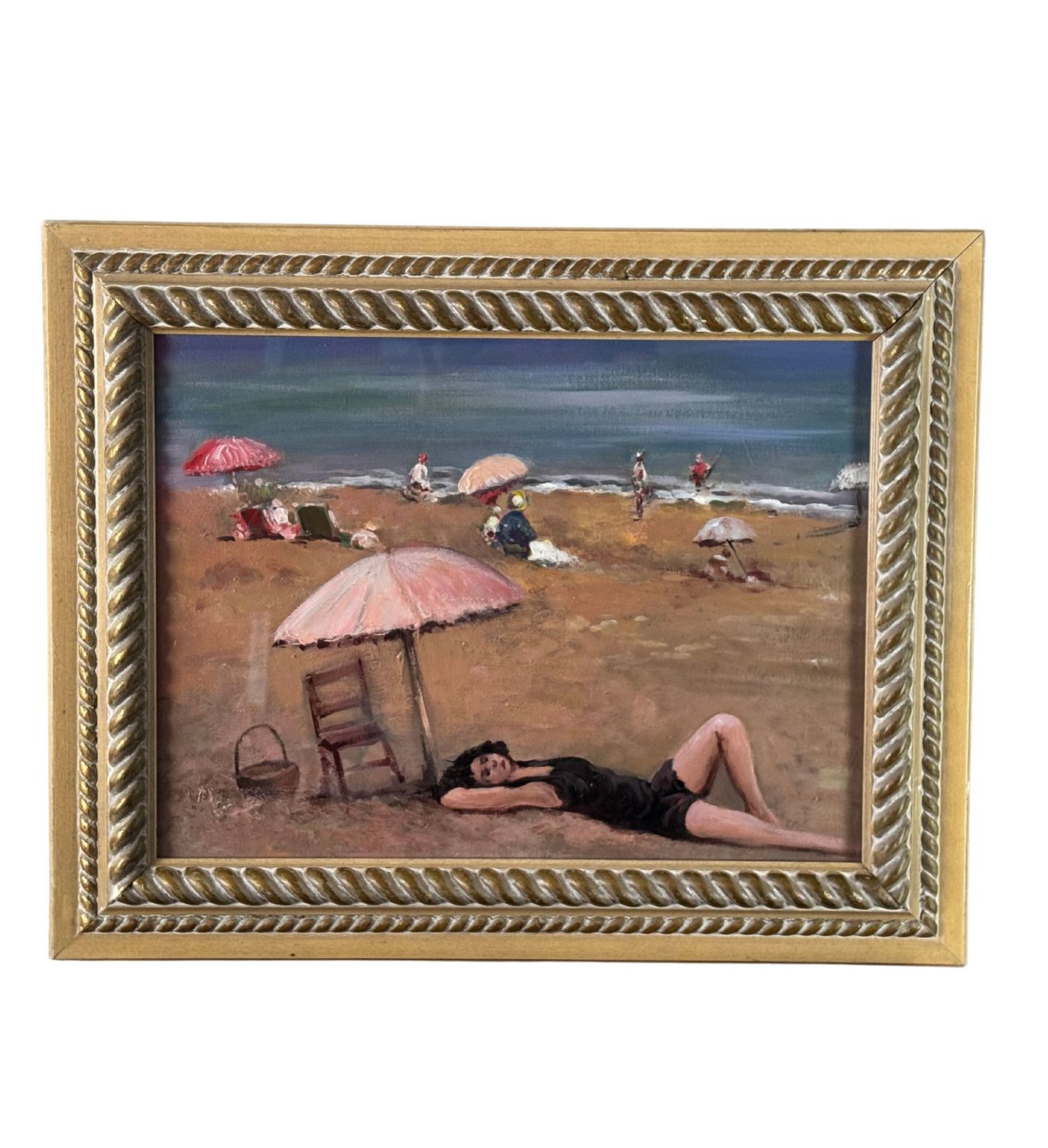 Dipinto olio su cartoncino telato, periodo XX secolo, scuola Italiana, raffigurante Scorcio di marina con bagnanti. Dimensioni compreso cornice: 51x41 cm. Dimensioni interno cornice: 30x40 cm. Artista anonimo. Opera in buone condizioni.