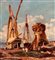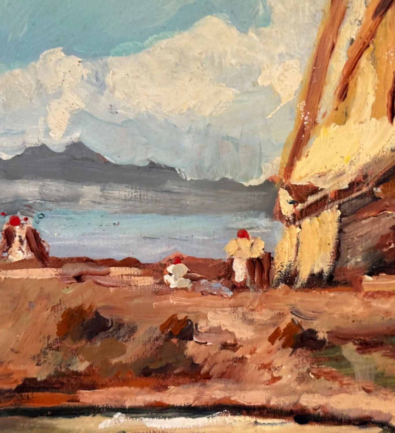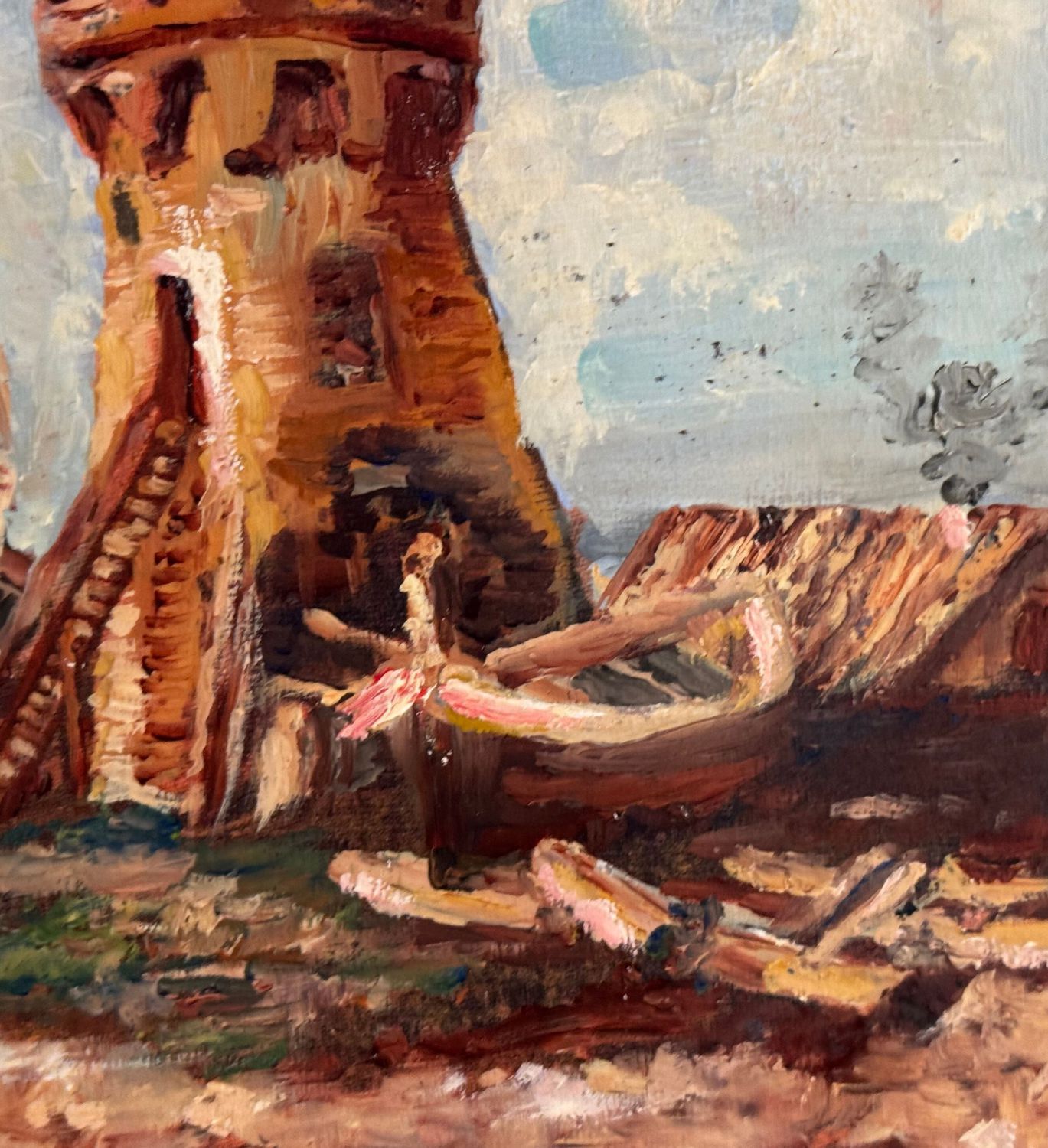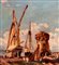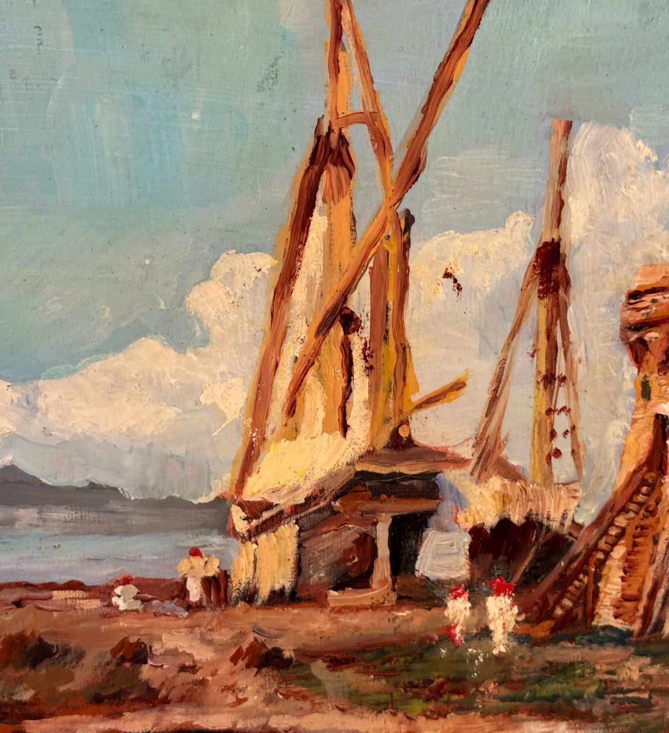 Dipinto olio su tavola, periodo XX secolo, scuola Italiana, raffigurante Cantiere su marina. Dimensioni: 42x30 cm. Artista anonimo. Opera in buone condizioni.