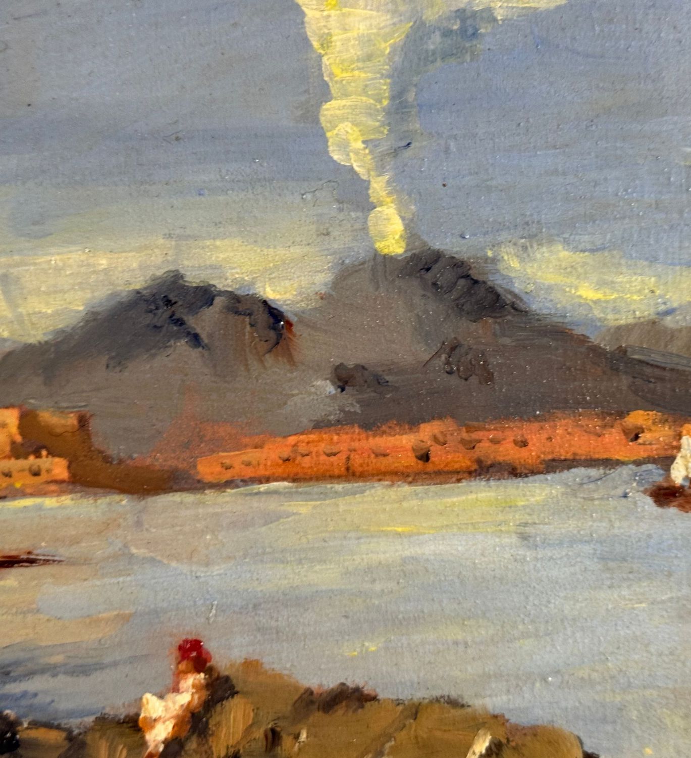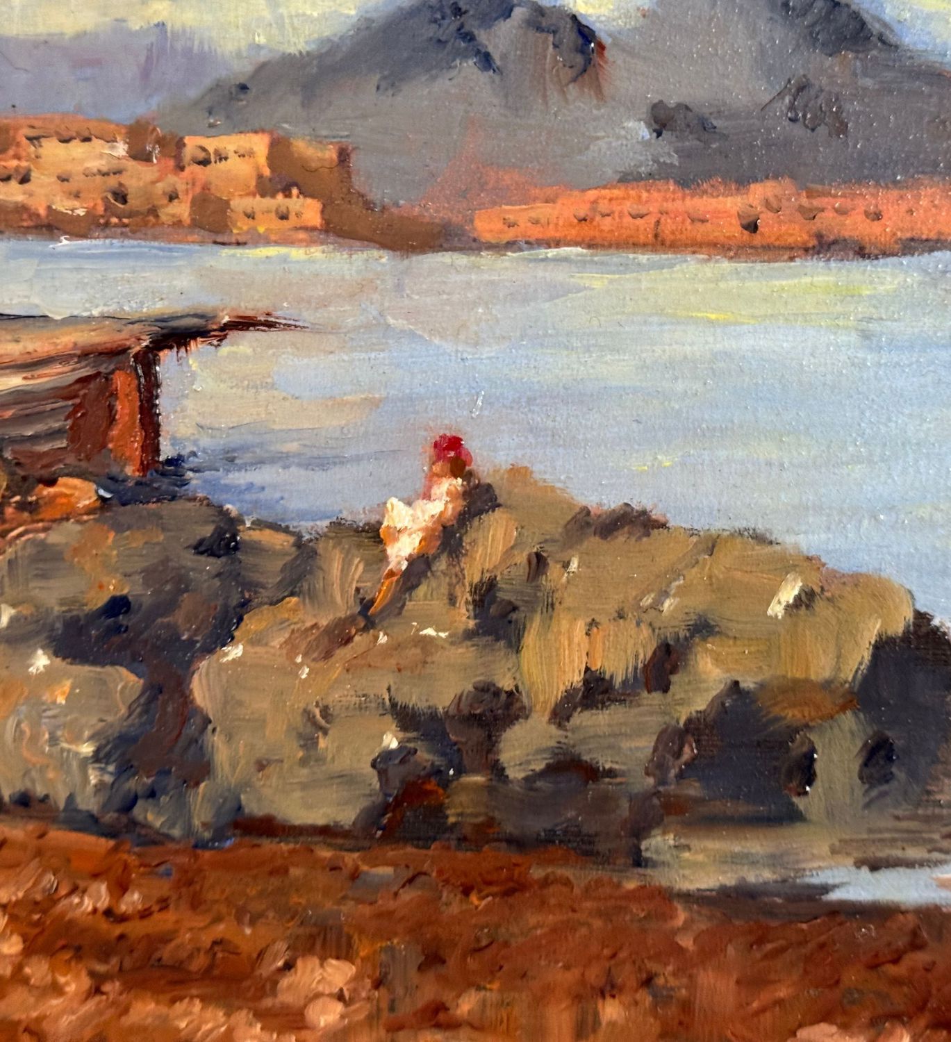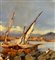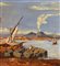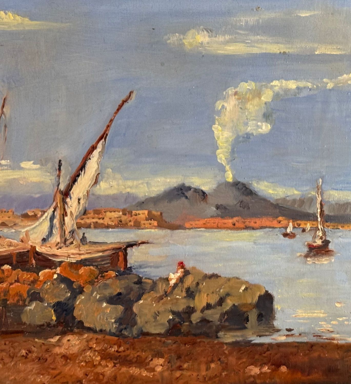 Dipinto olio su tavola, periodo XX secolo, scuola Italiana, raffigurante Scorcio di marina con barche e pescatori. Dimensioni: 42x30 cm. Artista anonimo. Opera in buone condizioni.