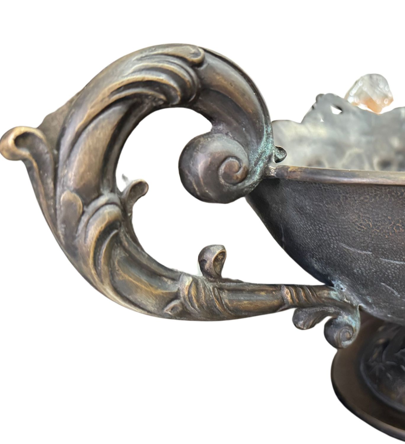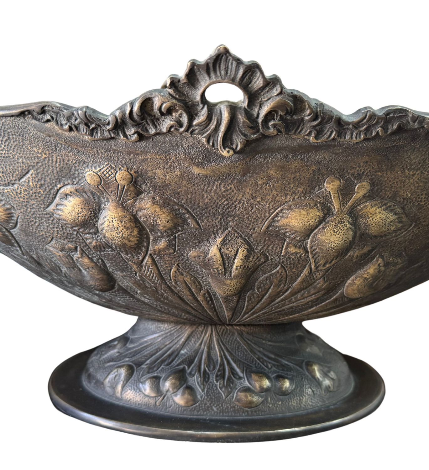 Vaso centrotavola cesellato a mano in bronzo patinato, periodo XIX/XX secolo....