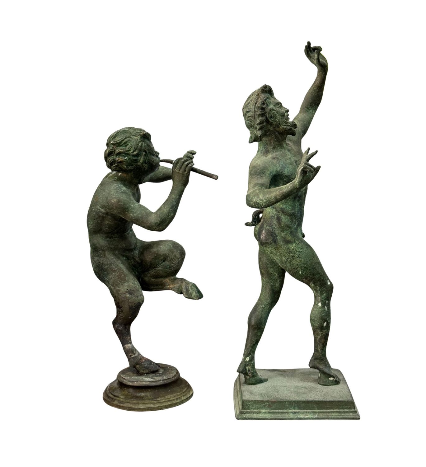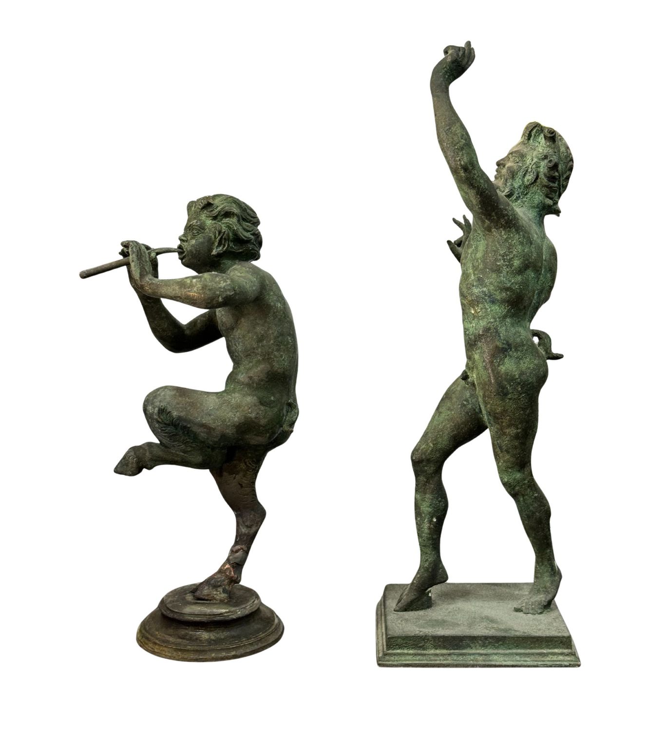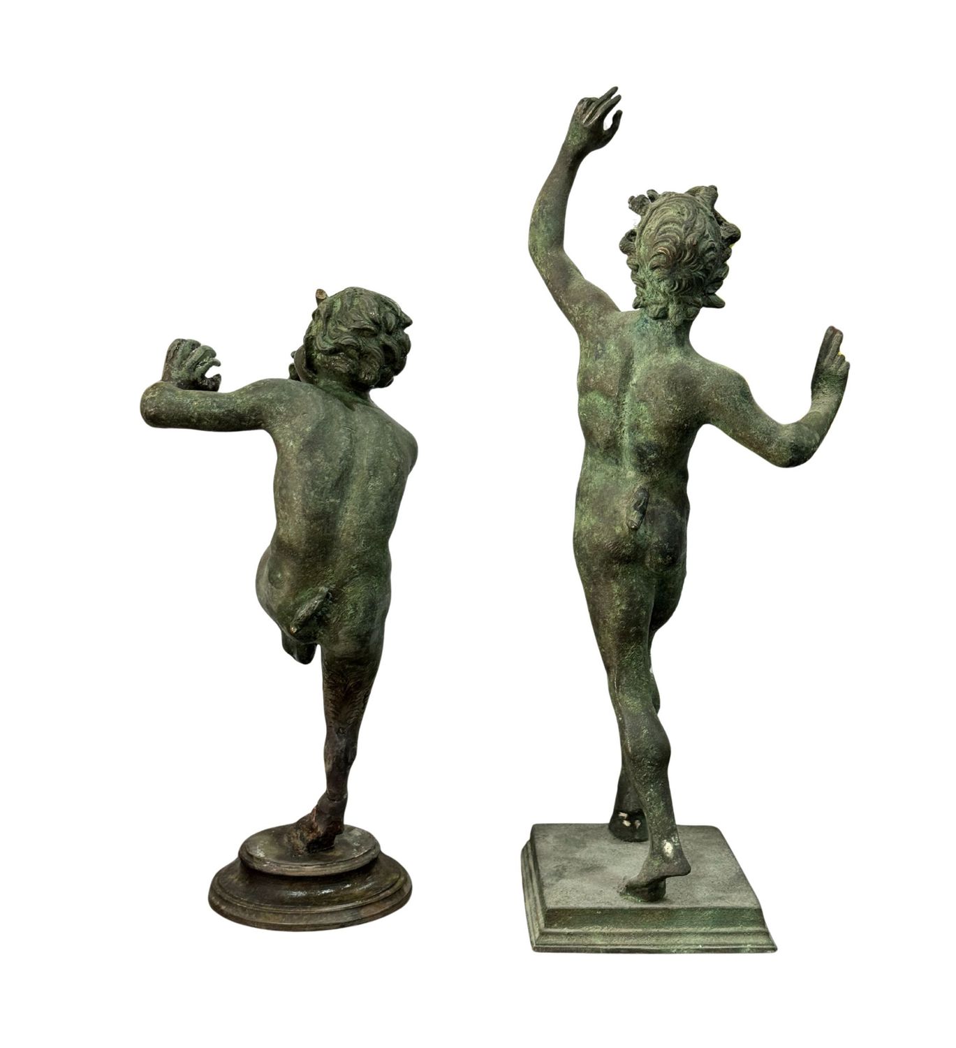 Coppia di bronzi, raffigurante Satiri. Dimensioni: h31x9x10 cm. Sculure in buone condizioni.