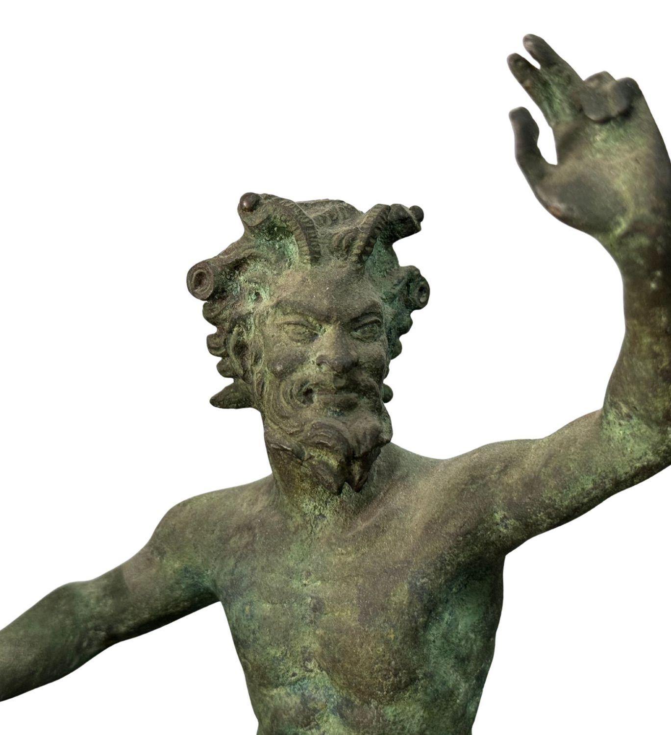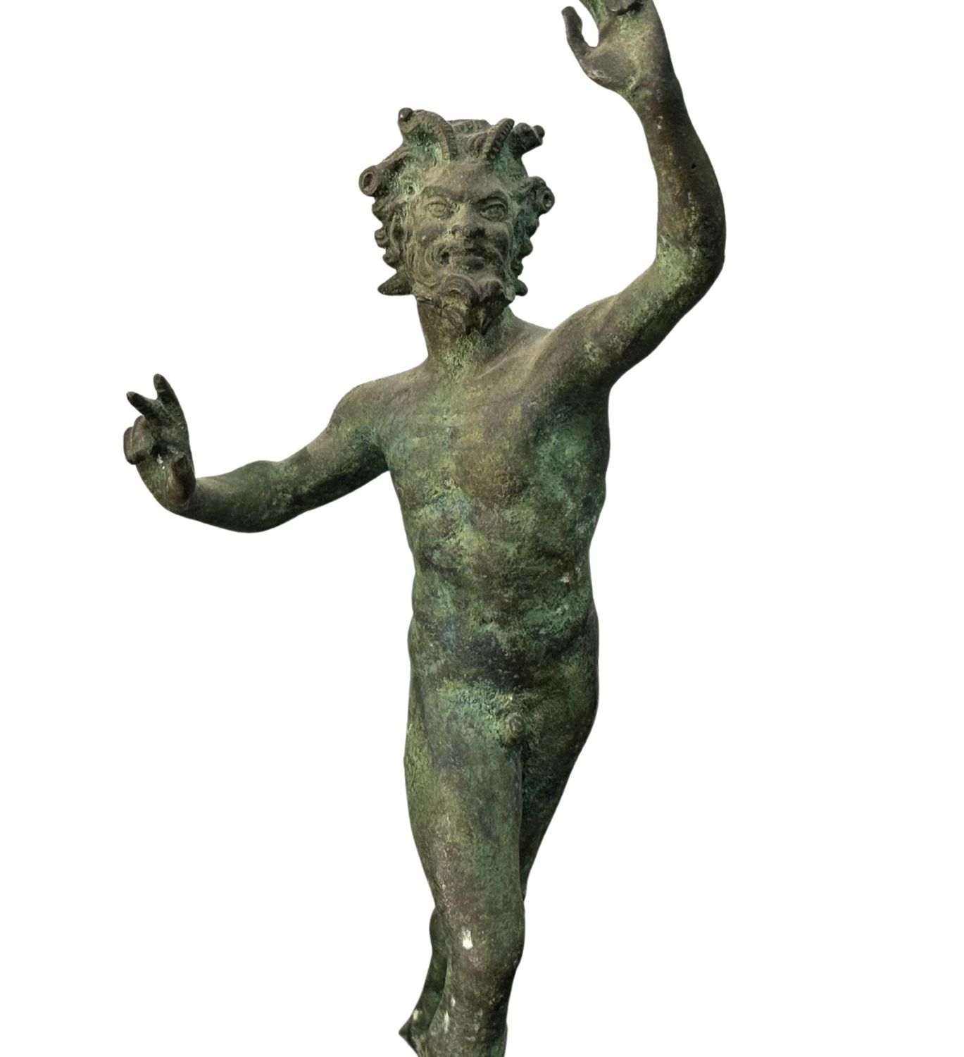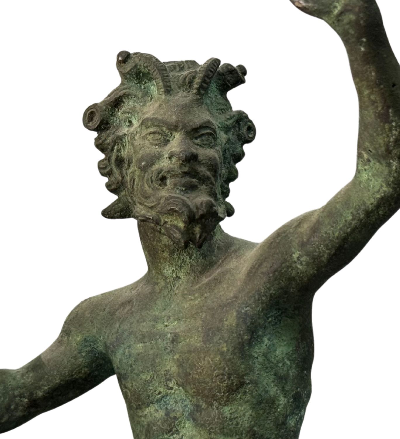 Coppia di bronzi, raffigurante Satiri. Dimensioni: h31x9x10 cm. Sculure in buone condizioni.