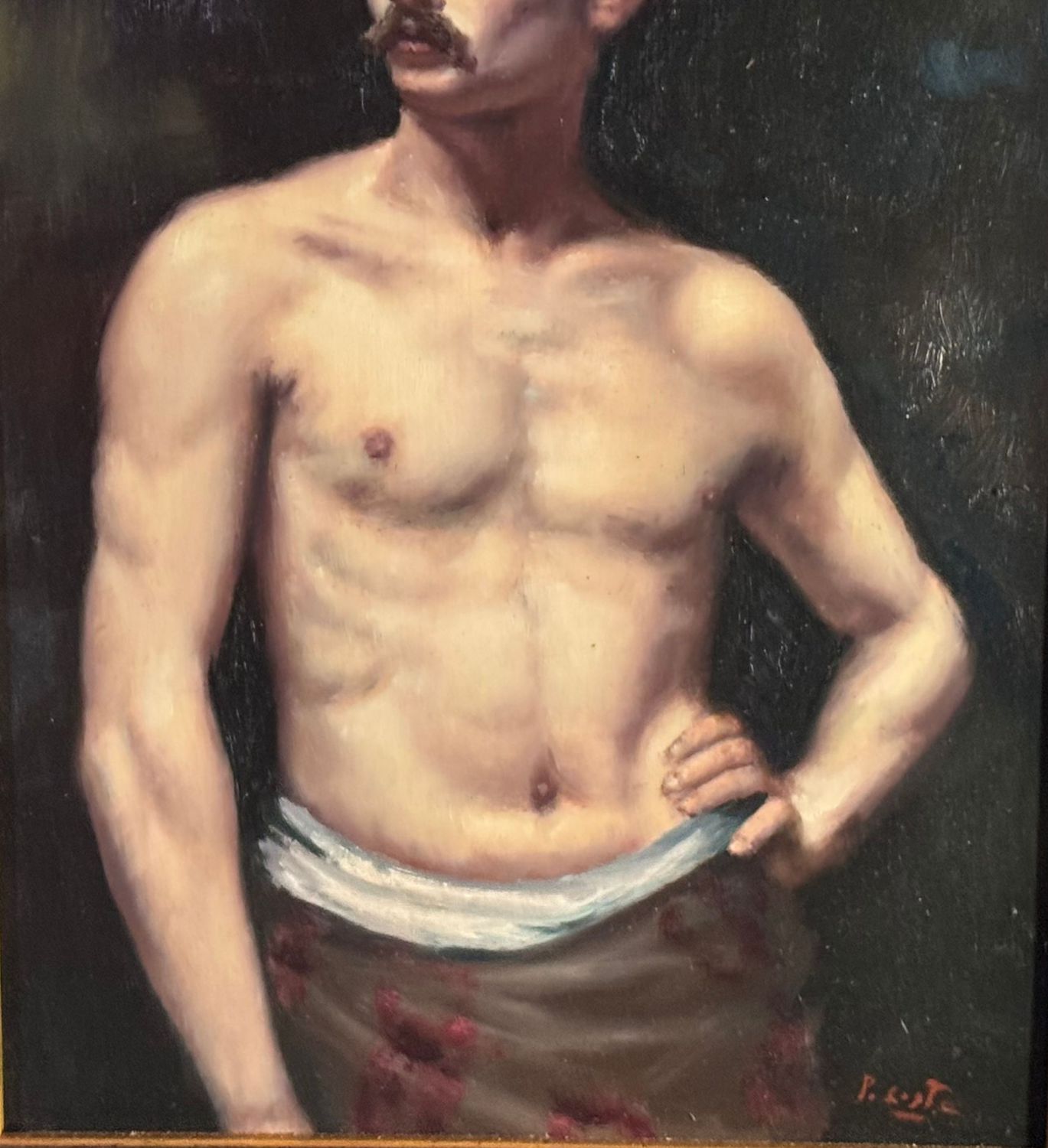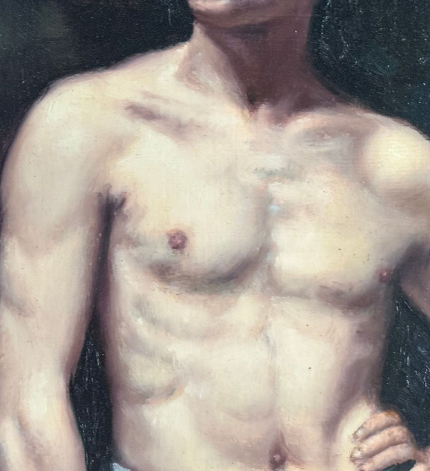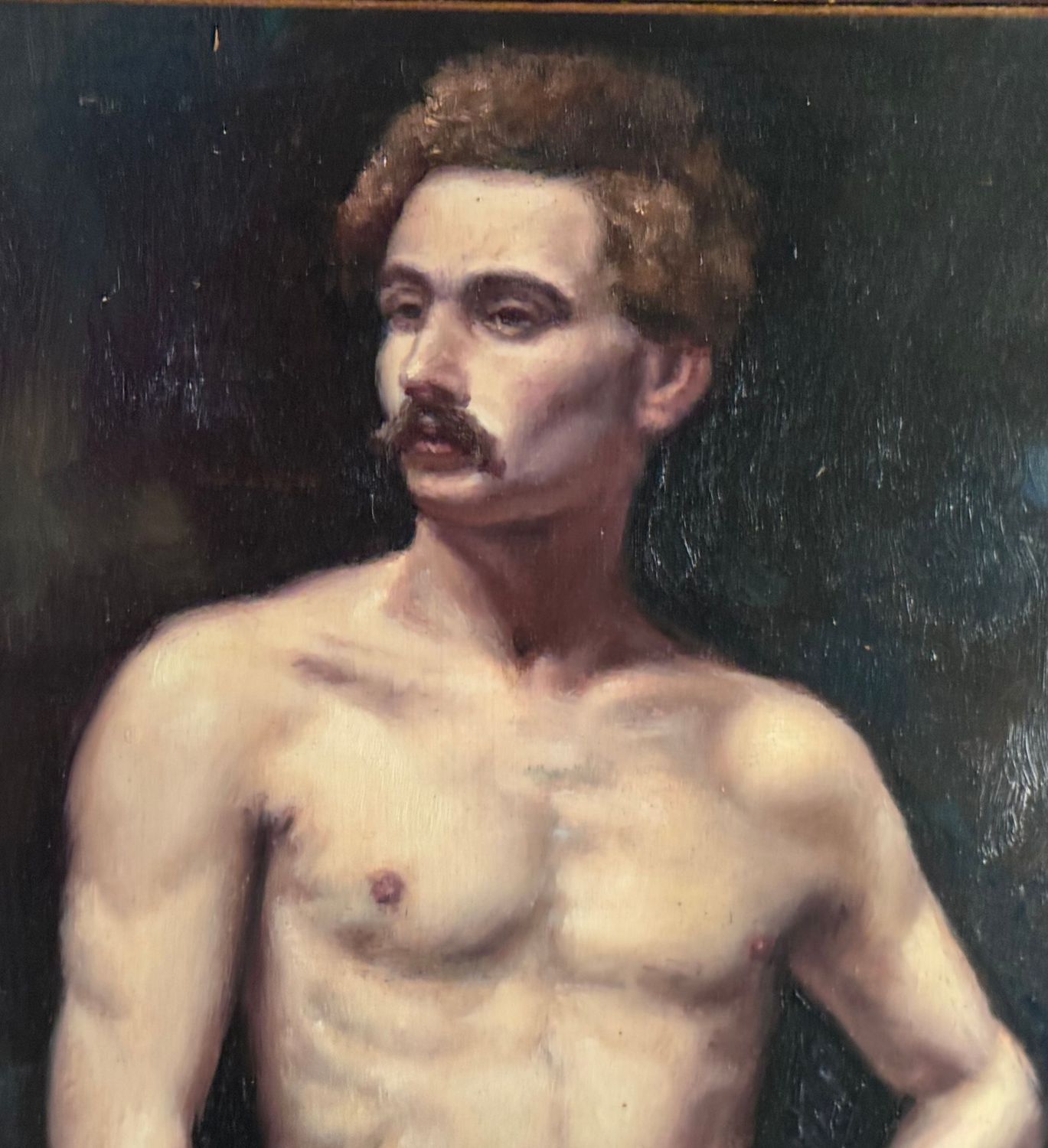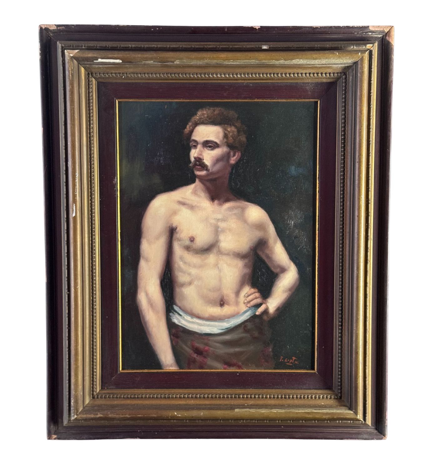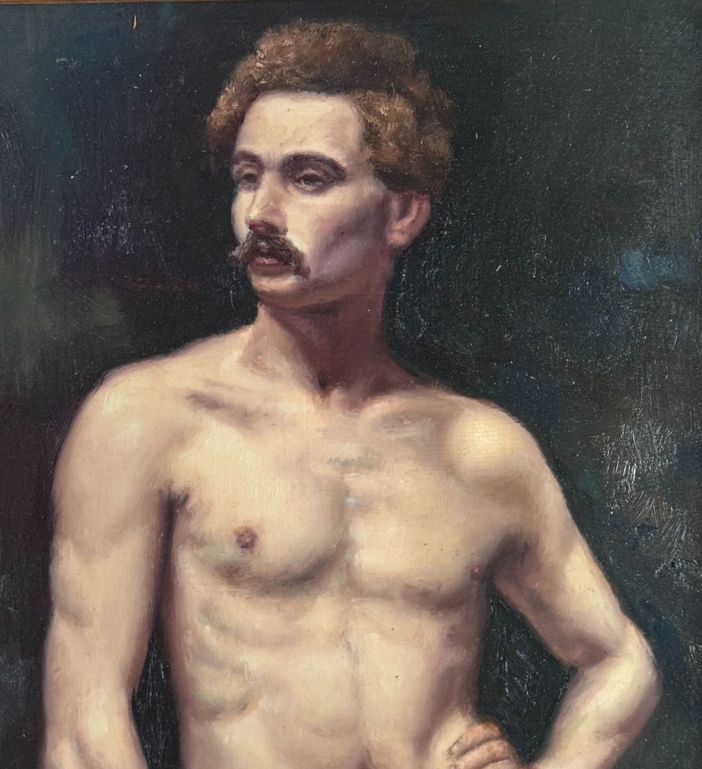 Dipinto olio su pannello, artista accademico, periodo XX secolo scuola Italiana, raffigurante Nudo maschile. Dimensioni compreso cornice: 54x64 cm. Dimensioni interno cornice: 32x43 cm . Reca firma in basso a destra da artista non identificato. Opera in buone condizioni.