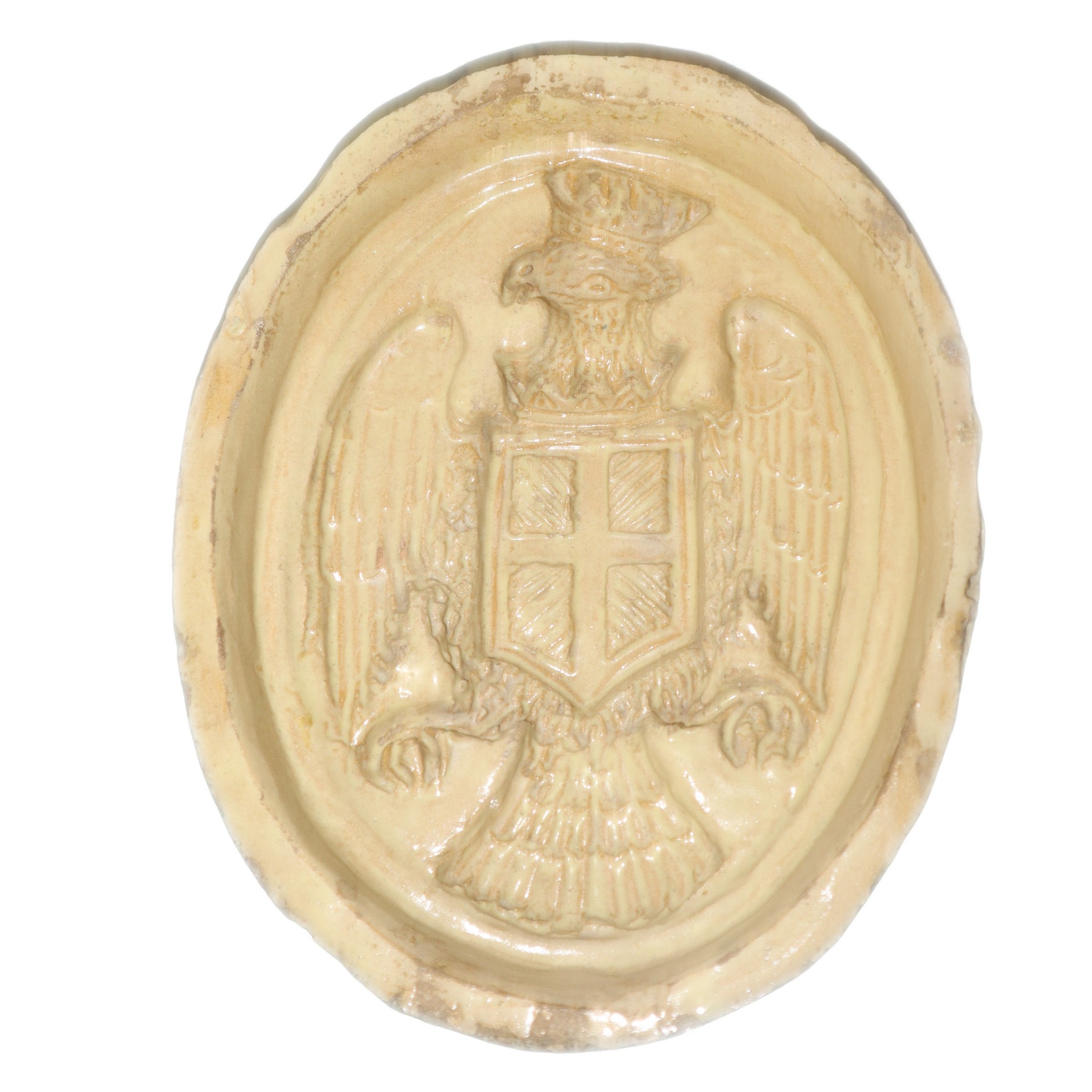 Formella in maiolica di Caltagirone con stemma, primi 20° secolo h cm 7,5 diametro cm 20