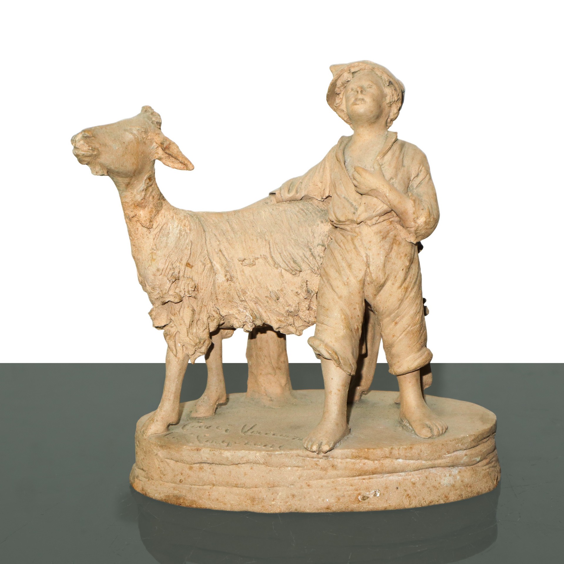 Luigi Vaccaro - Pastore con capra h cm 15X13X8,5 Firmato alla base