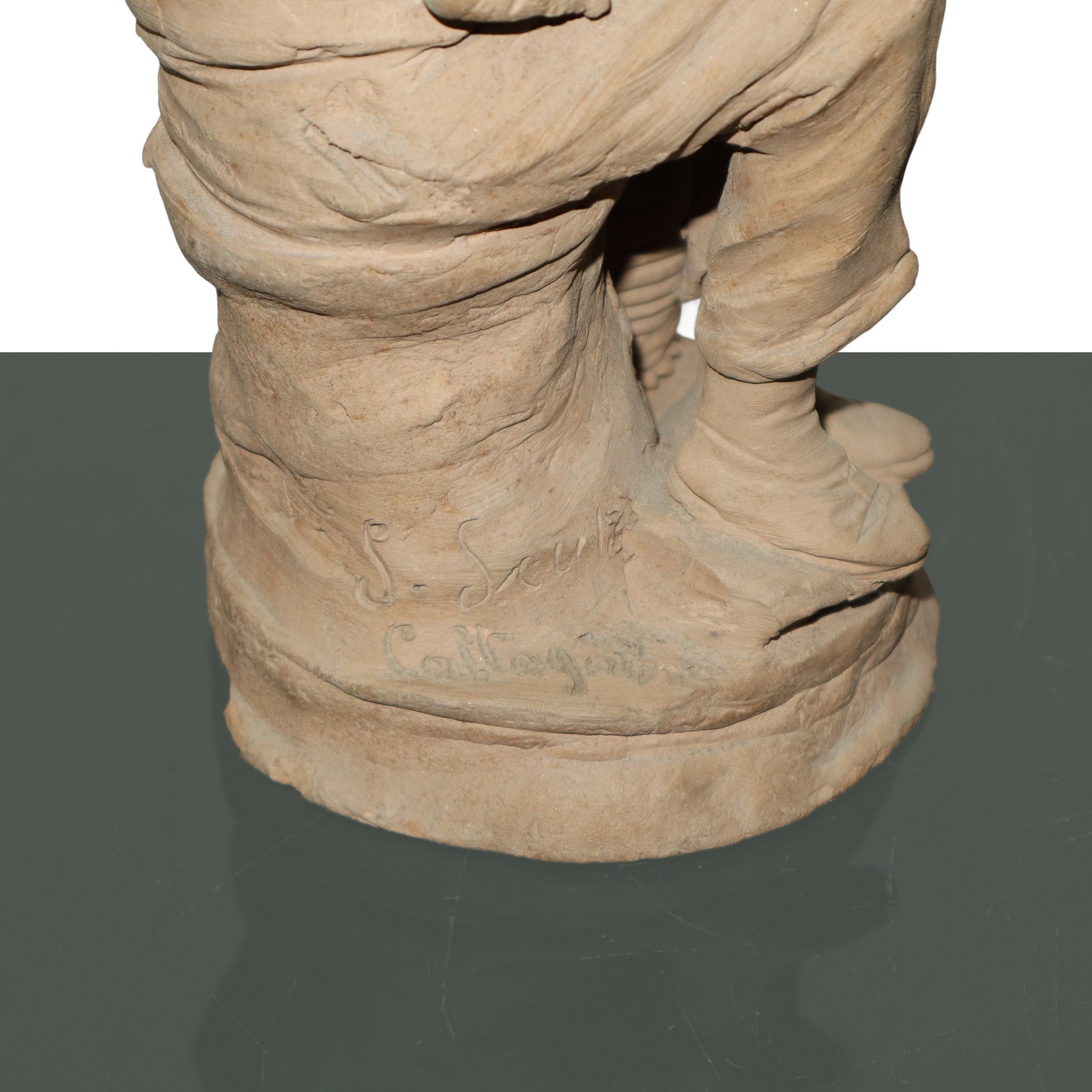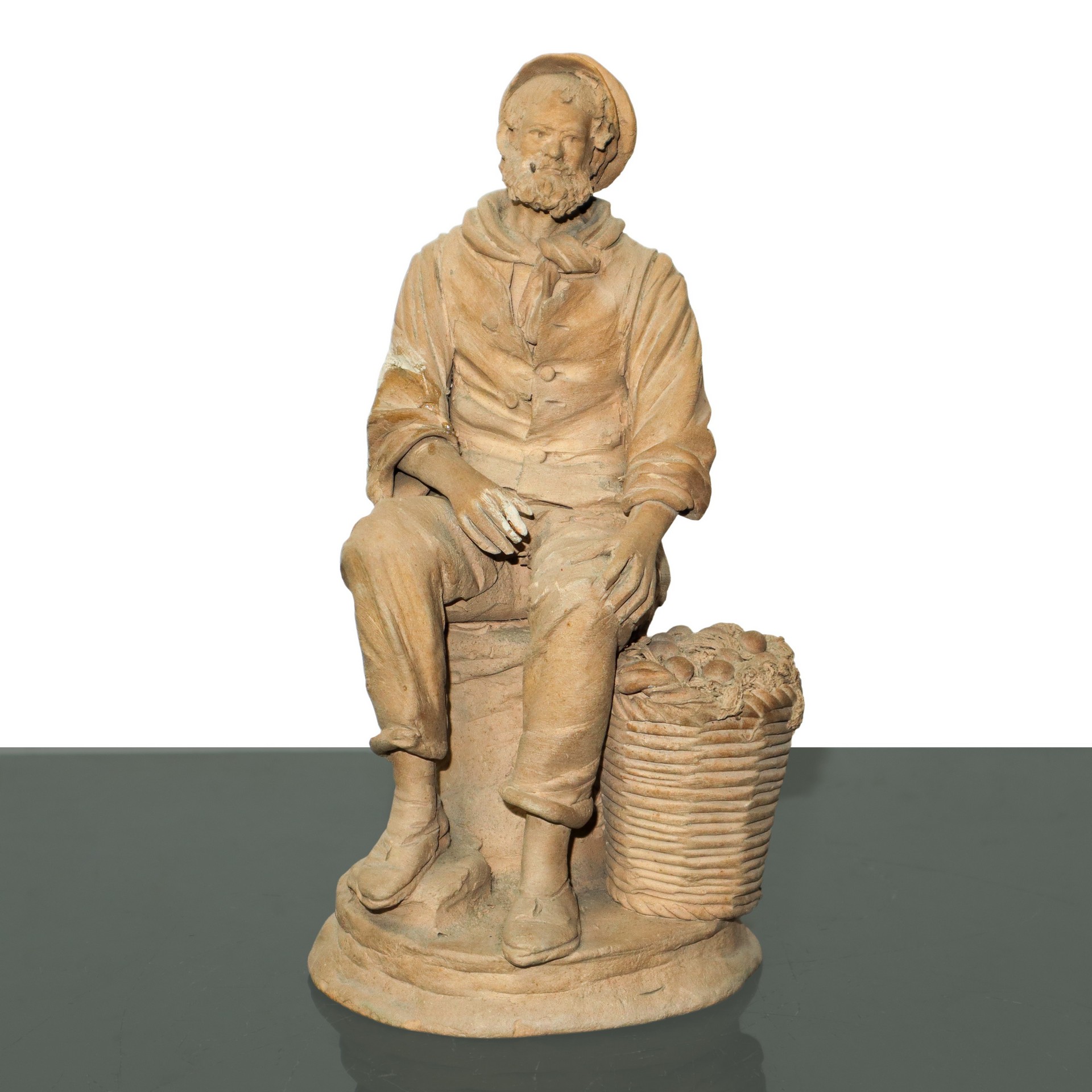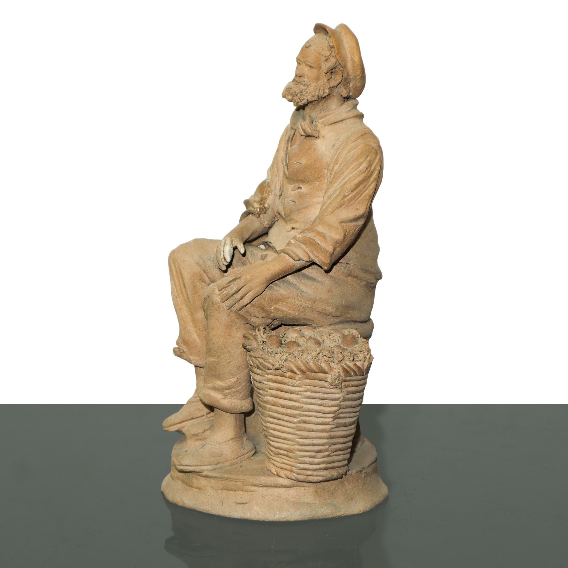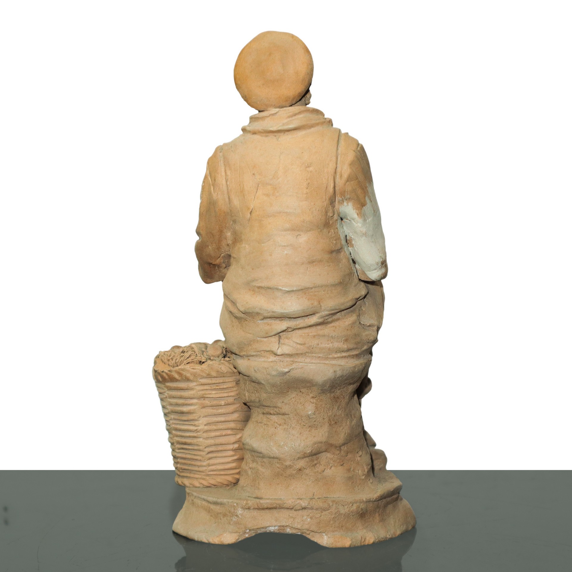 Olindo Scuto (Catlagirone 1921 - 2017) - Contadino con cesto di frutta h cm 22