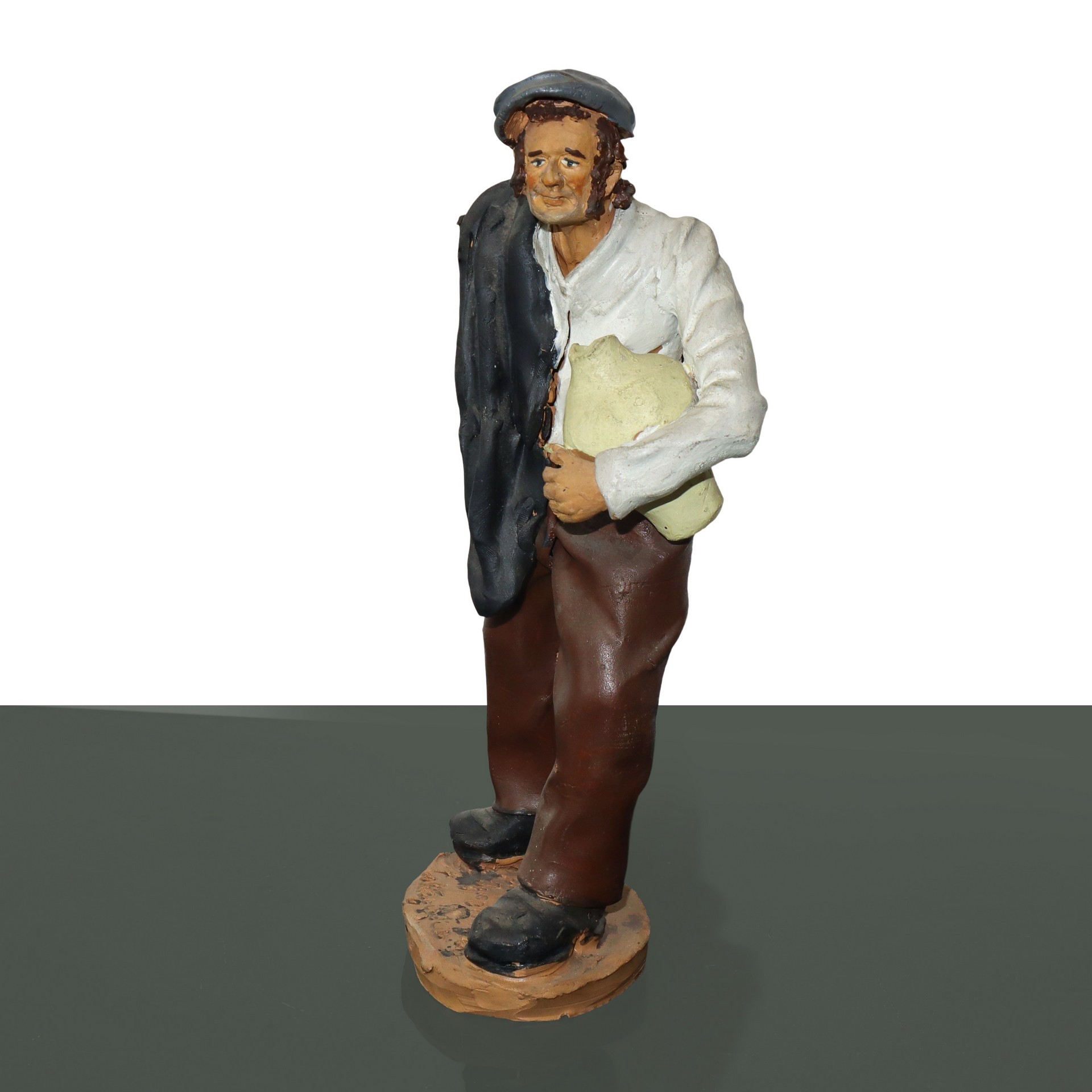 Pastore con quartara in ceramica di Caltagirone h cm 29 Firmato Ignazio Mario Scarlatella