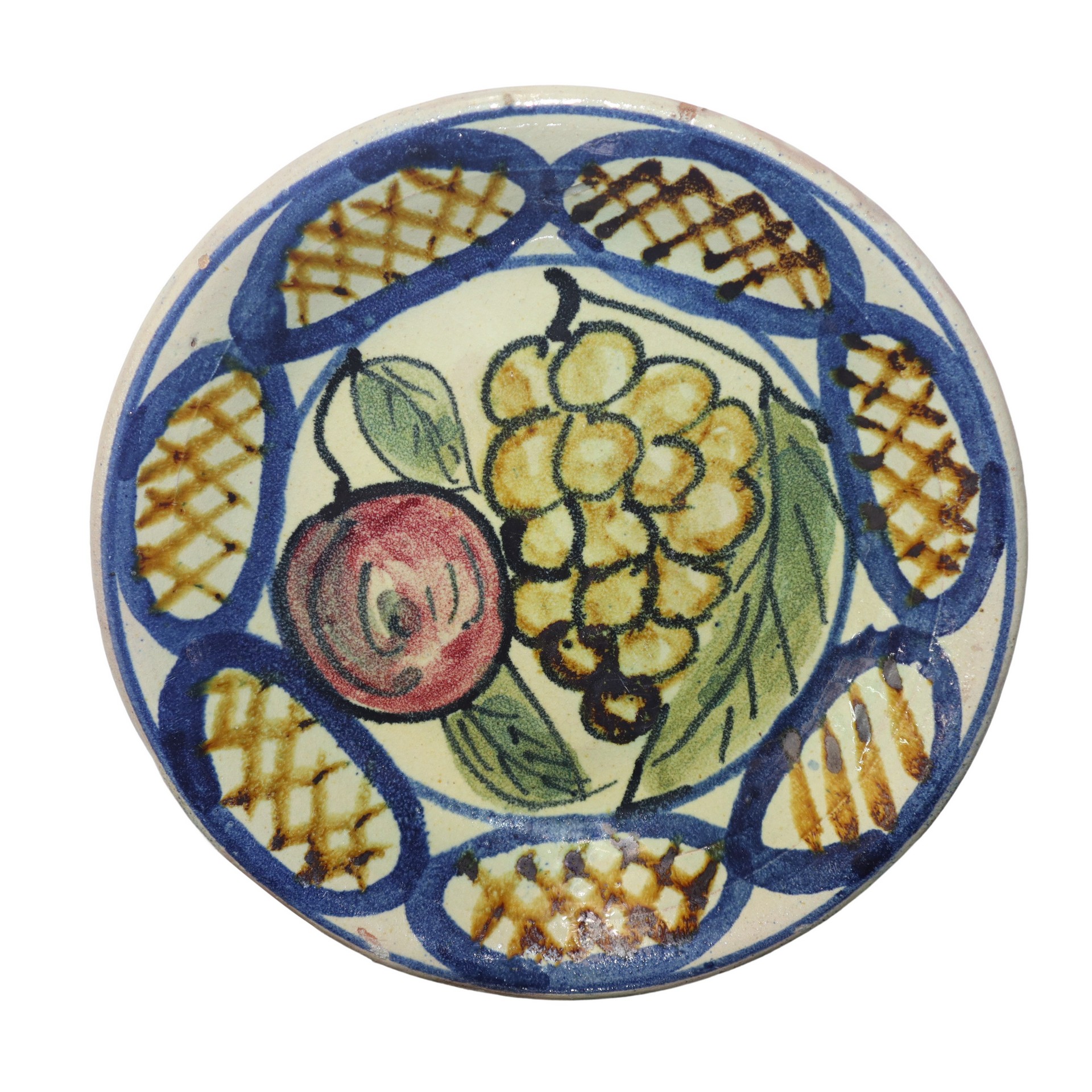 N°2 Piatti decorativi in maiolica di Santo Stefano di Camastra con decori di frutta diametro cm 21 Marchio della manifattura sul retro