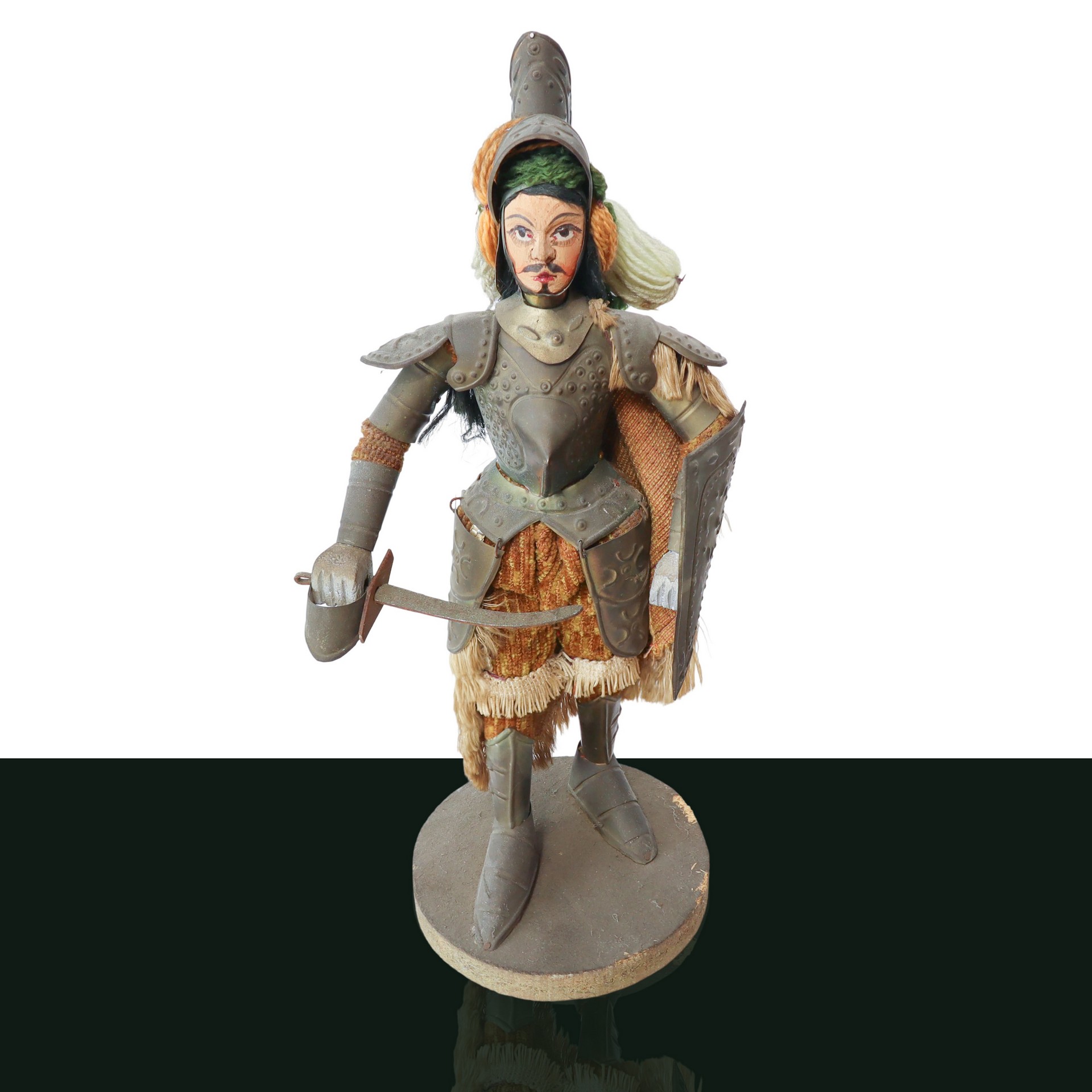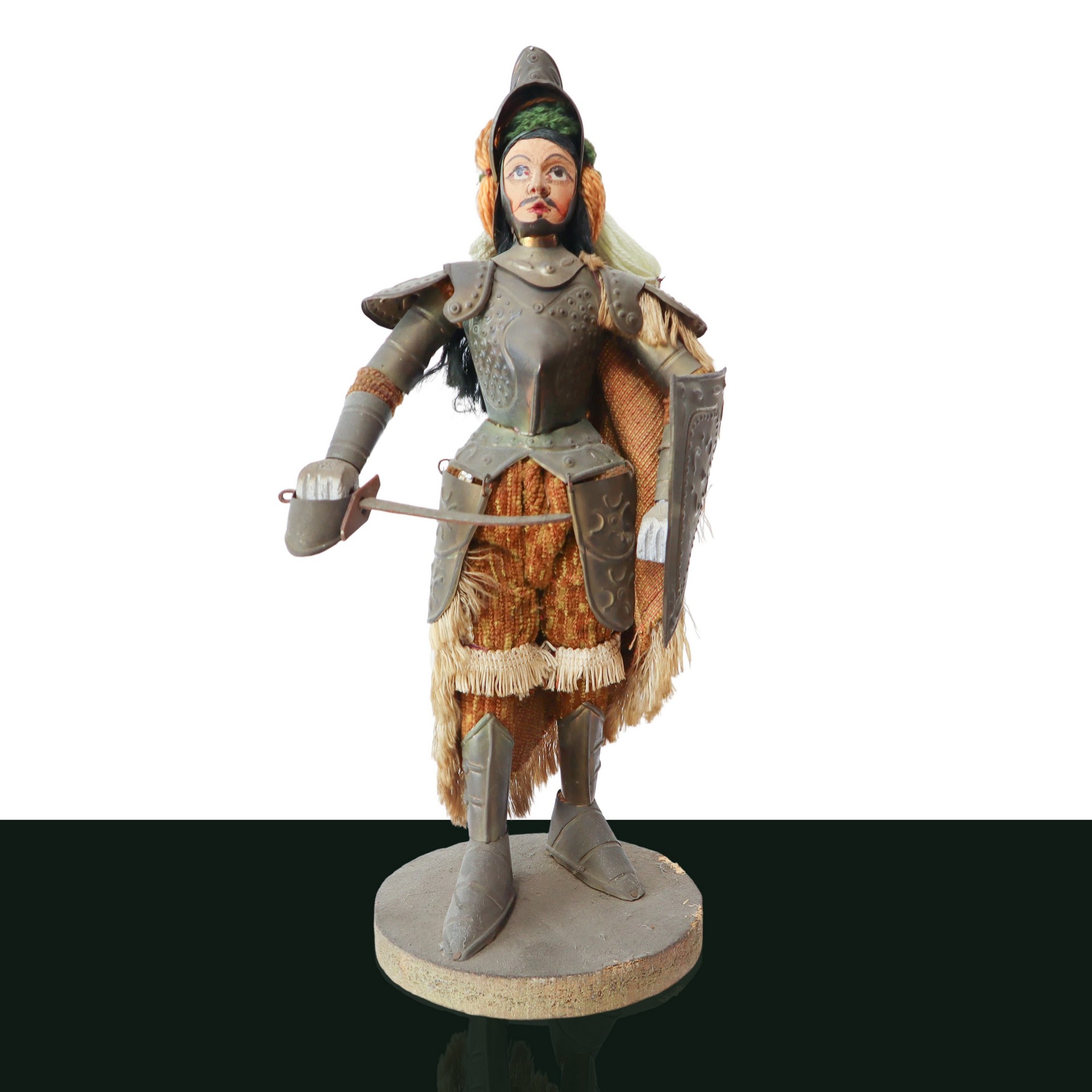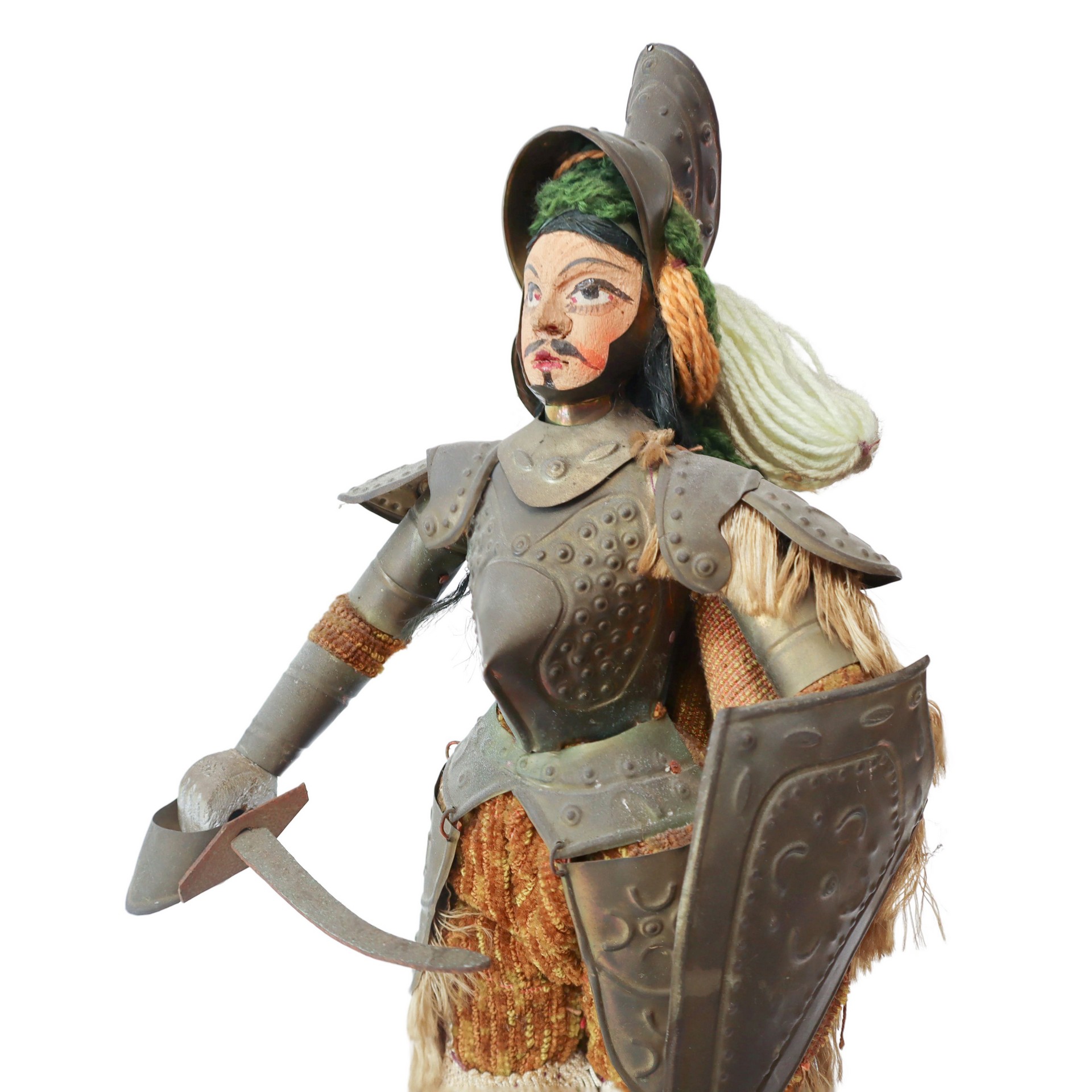 Lot 91 | Pupo siciliano con abito in stoffa e armatura in metallo sbalzato e base in legno, primi 20° secolo