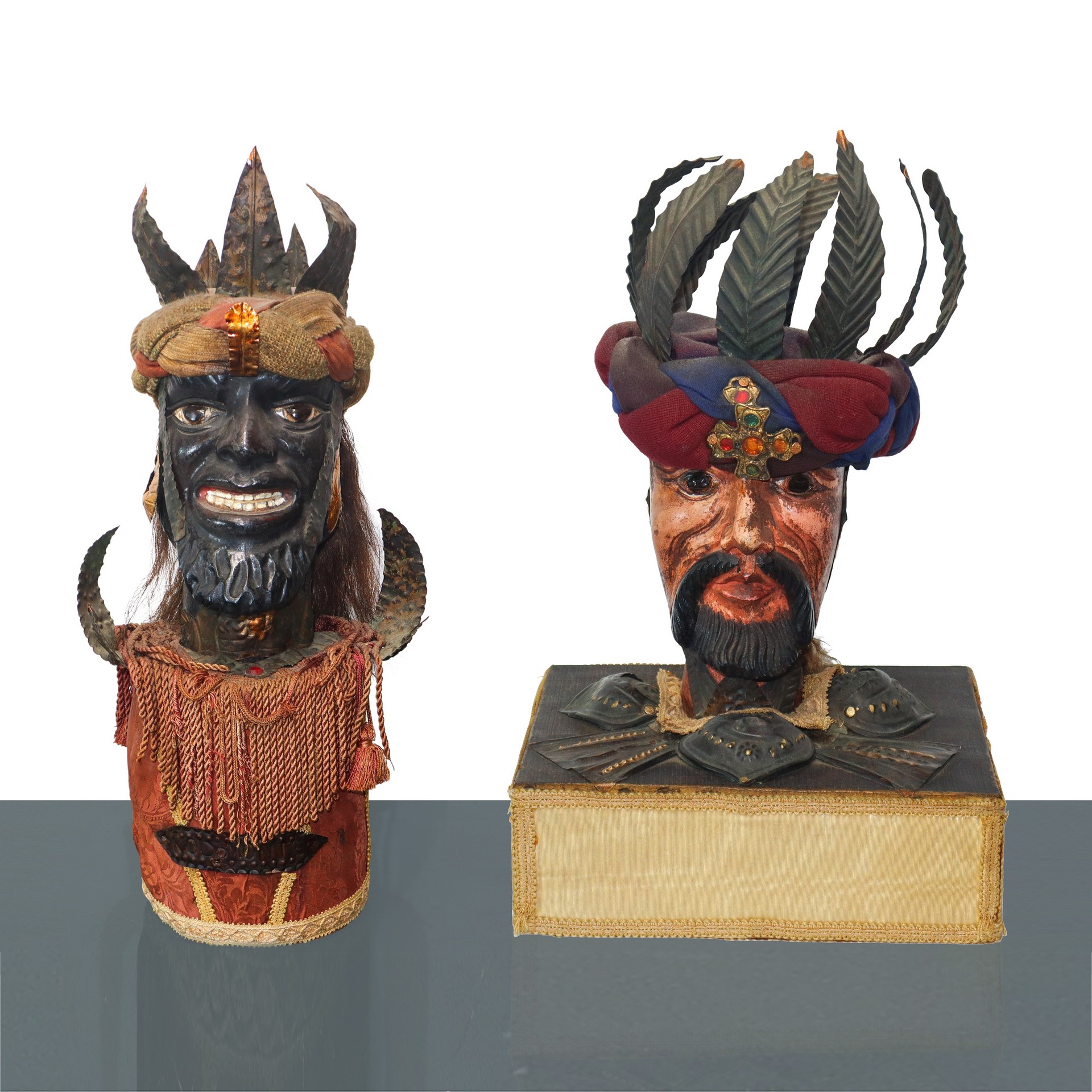 Lot 92 | Coppia di teste di pupi siciliani con base