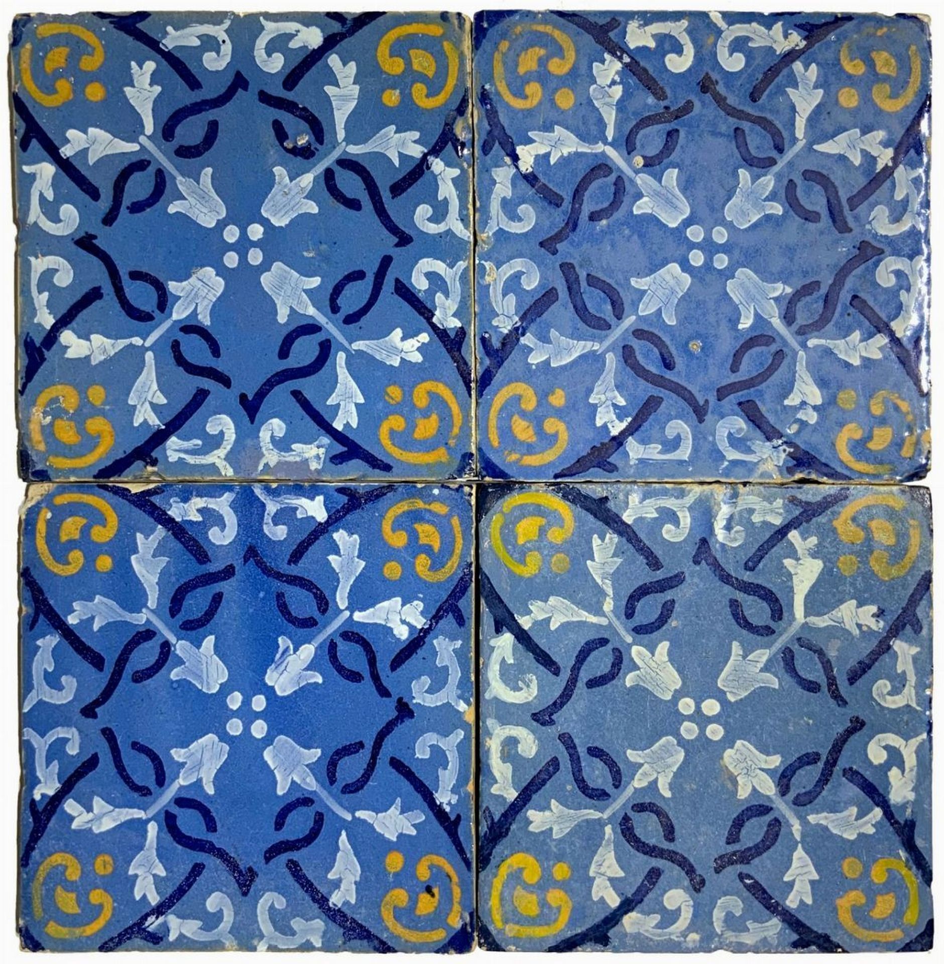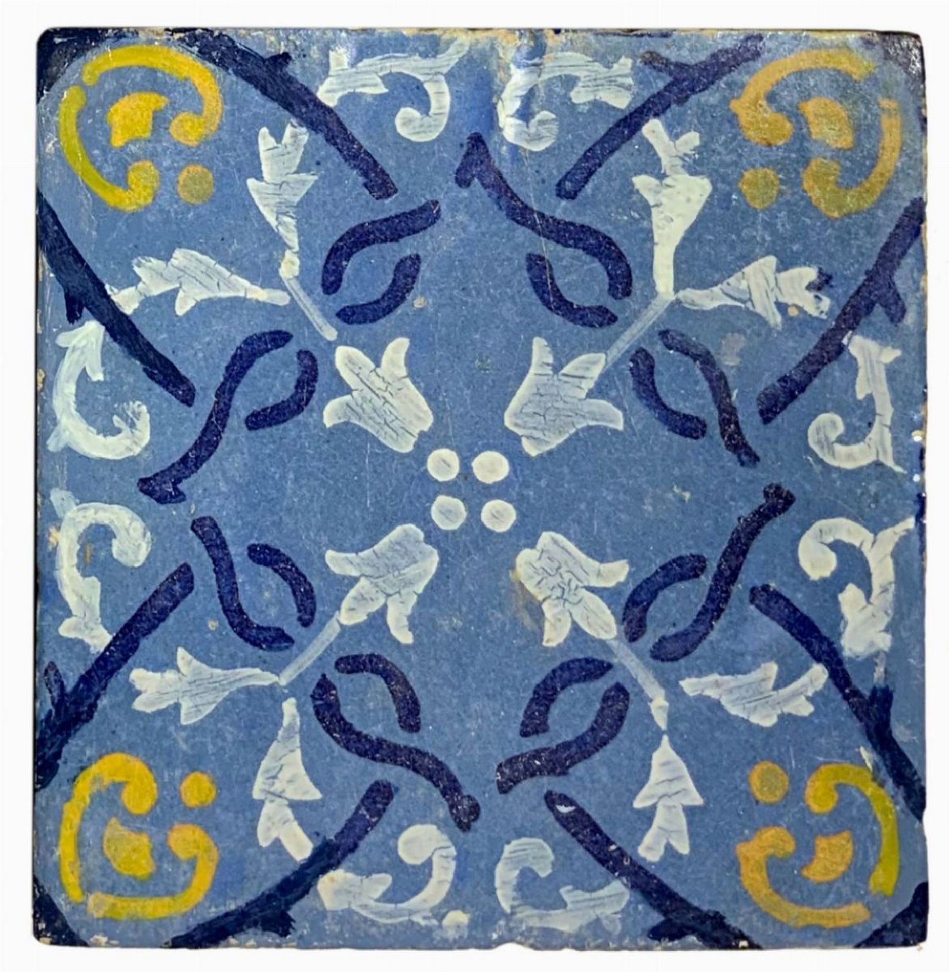 Antonio Pace (Santo Stefano di Camastra) - 90 piastrelle in ceramica siciliana di Santo Stefano di Camastra (90 piastrelle), Messina, primi 20° secolo Ogni piastrella Cm 19,5x19,5 Le piastrelle sono irregolari e diverse l'una dall'altra in quanto realizzate a mano. (Disponibilità 90 pz).