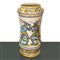 Grande cilindro in maiolica di Caltagirone dipinto policromo con raffigurazione di pupi siciliani, 20° secolo h cm 51