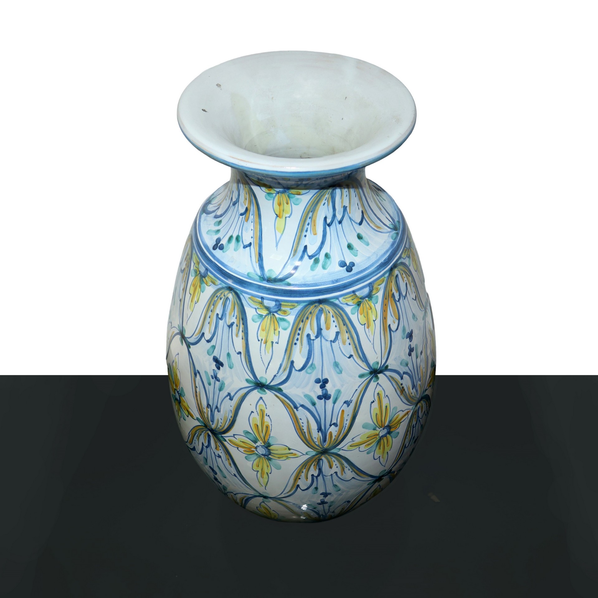 Ceramiche Brancaleone Caltagirone - Vaso in maiolica di Caltagirone dipinto a motivi floreali, 20° secolo h cm 41 Firmato alla base Brancaleone