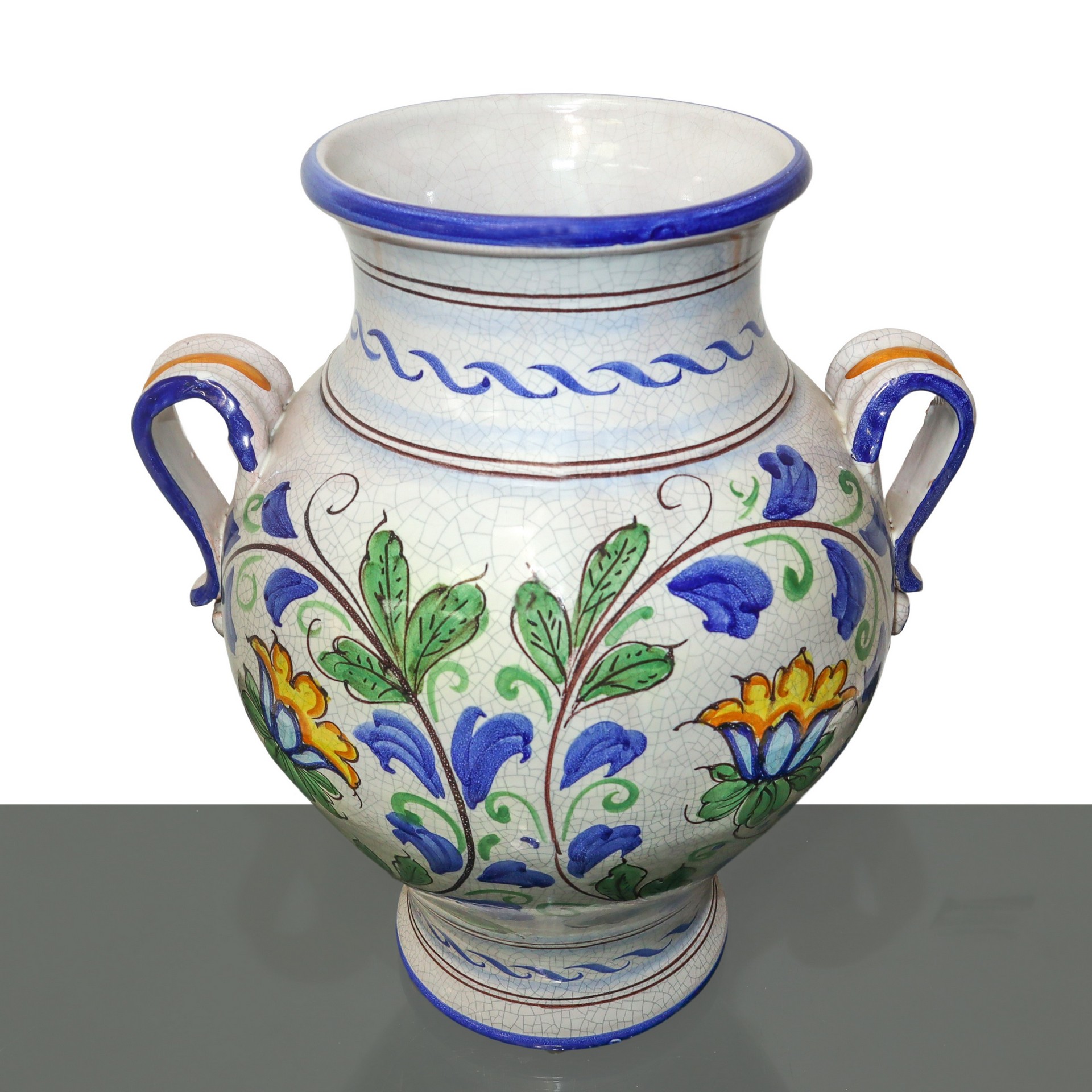 Torcivia & Todaro Ceramiche Santo Stefano di Camastra - Anfora biansata in maiolica di Santo Stefano di Camastra dipinta policroma e decorata a motivi floreali, 20° secolo
