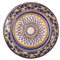 Piatto in maiolica di Santo Stefano di Camastra dipinto policromo nei toni del blu e dell'arancione con decoro di foglie sul bordo