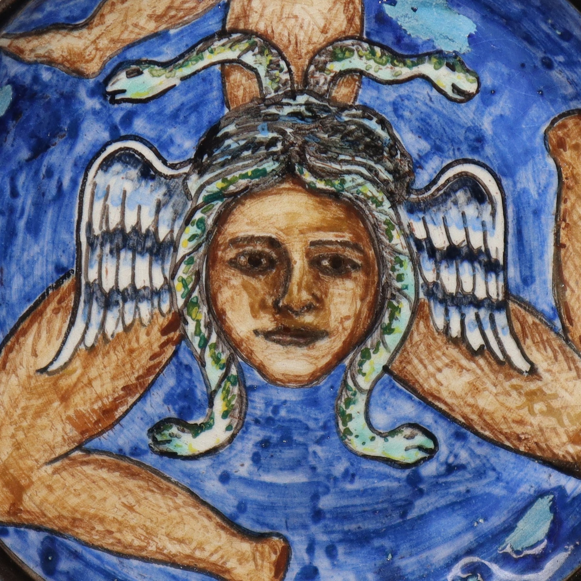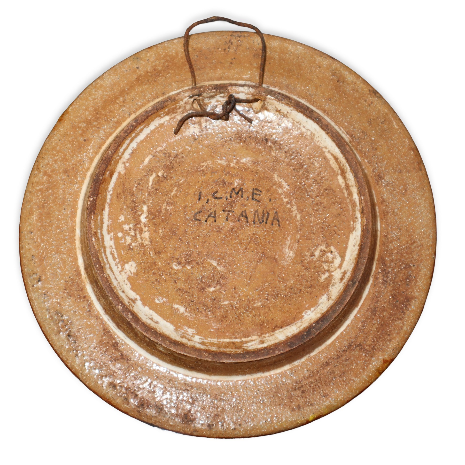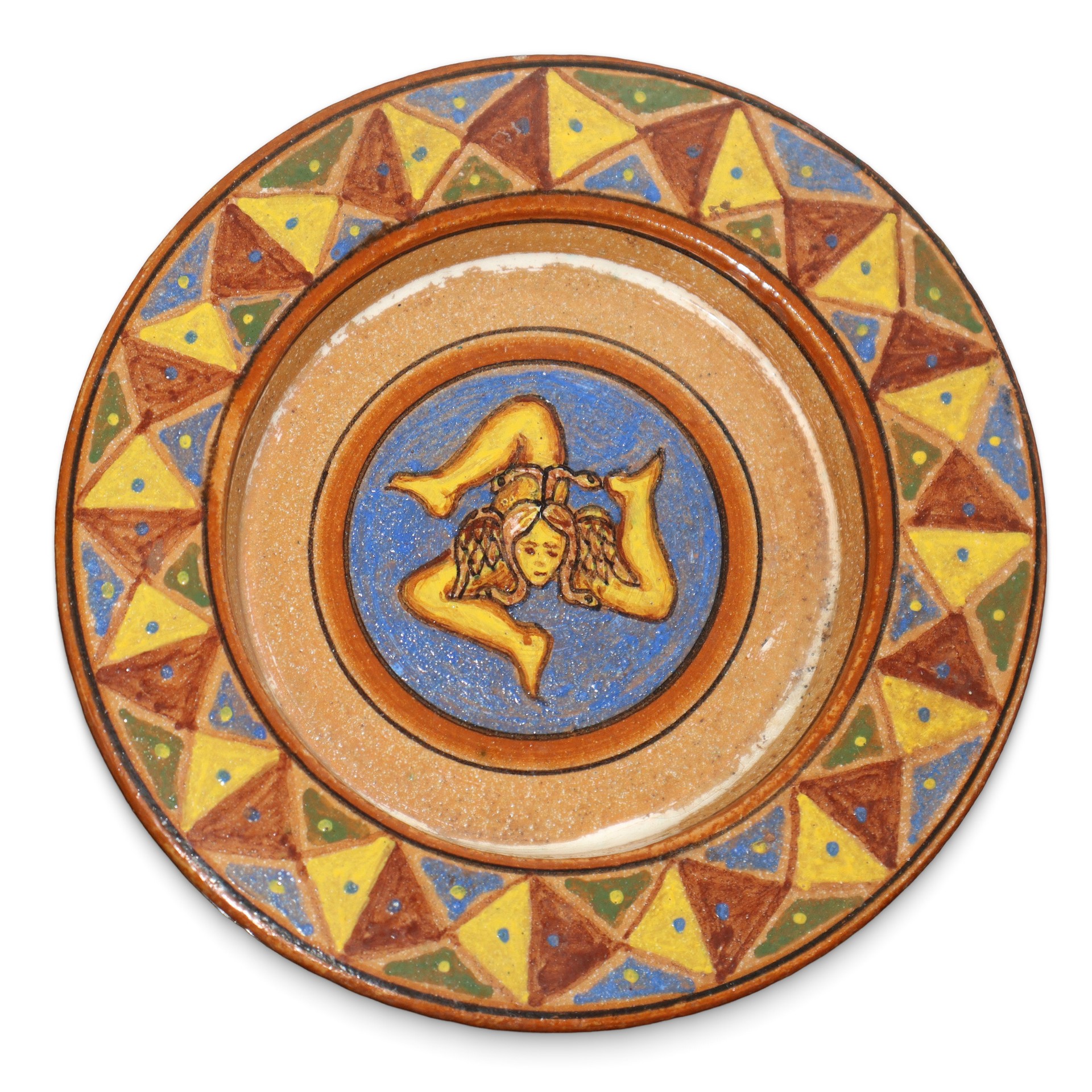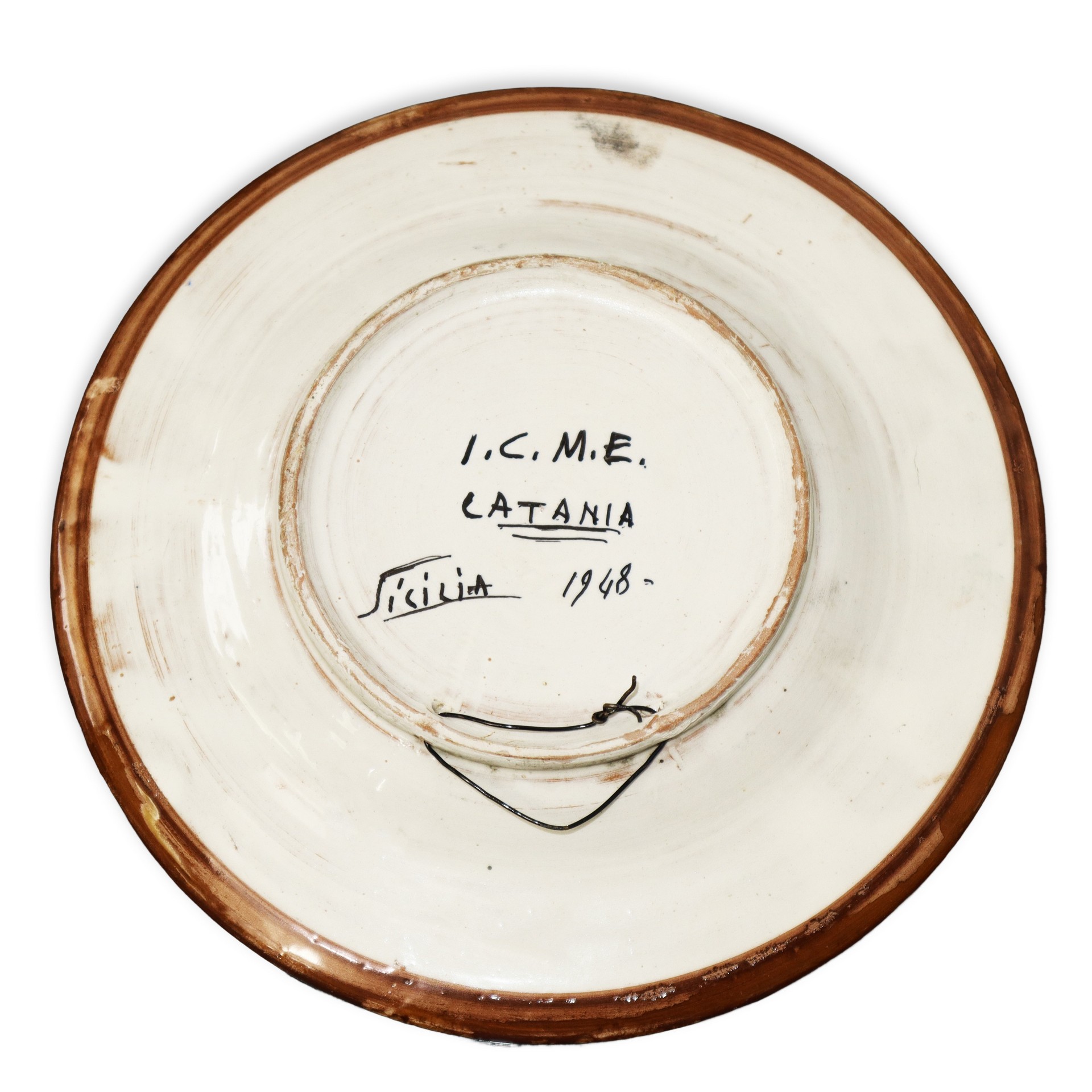 I.C.M.E. Catania Ceramiche - Due piattini in ceramica con trinacria Diametro 18,5 , diametro 15,5 Al retro marchio e data 1948