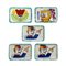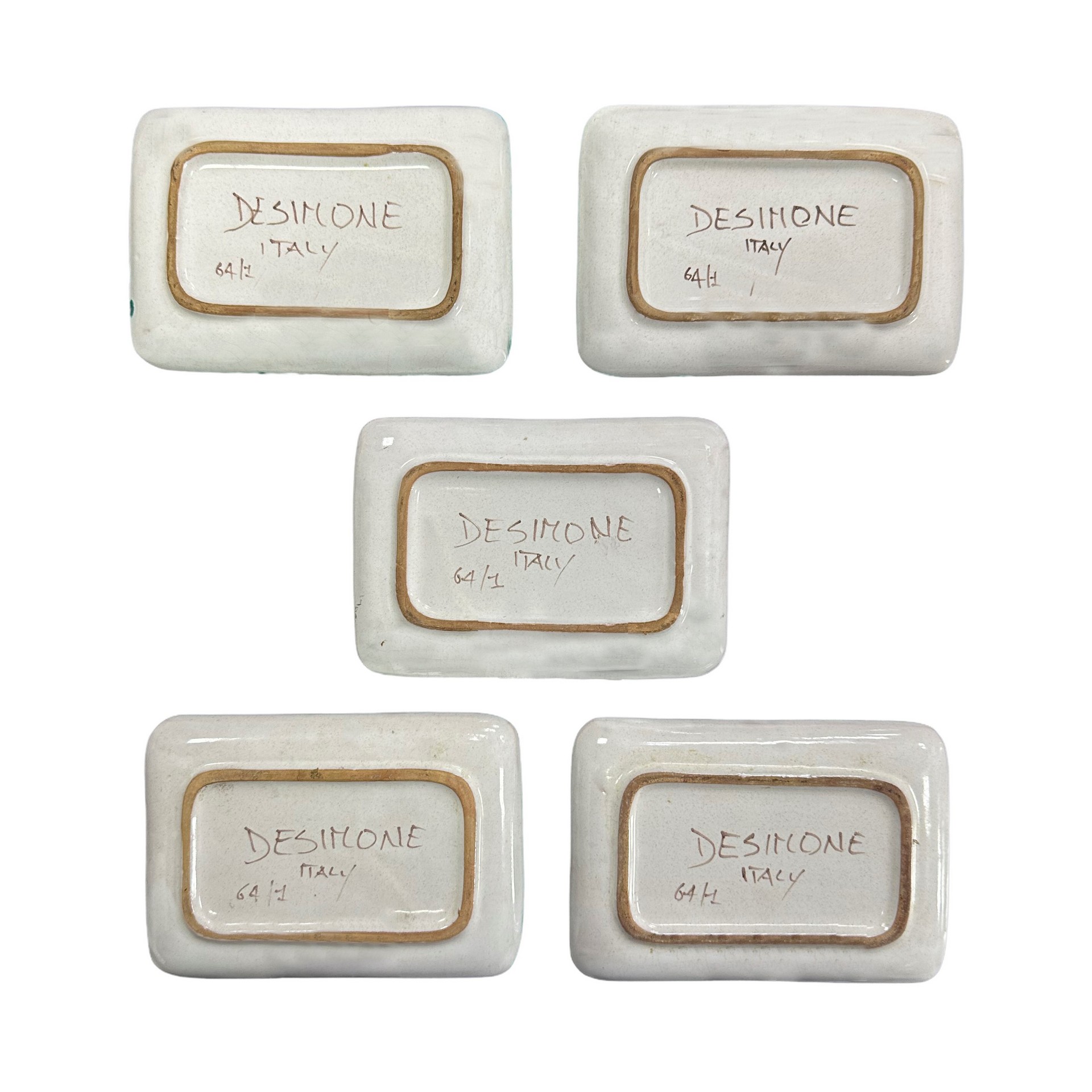 De Simone - Cinque posaceneri rettangolari in ceramica dipinti a mano, tre raffiguranti un gendarme, uno un fiore, uno un soldato, 1960/1970