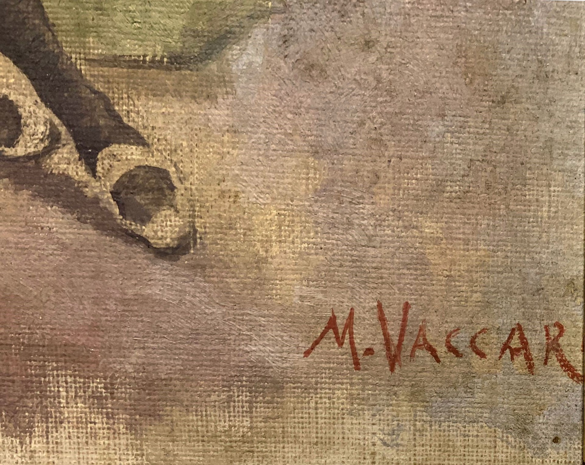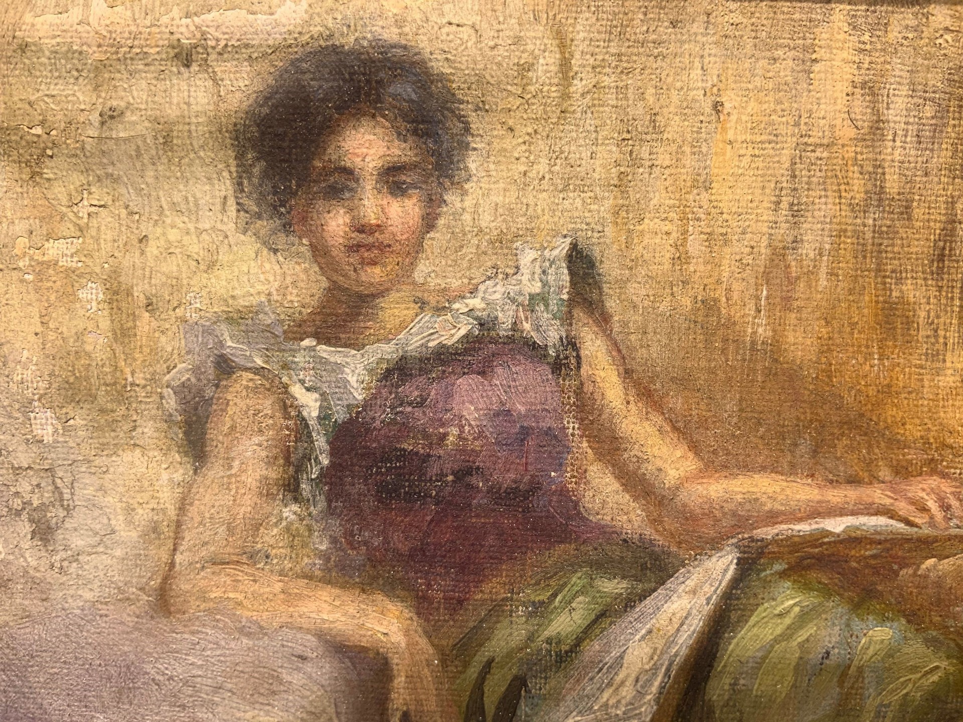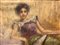 Mario Vaccaro (Caltagirone 1869 - 1956) - Ragazza con il giornale 15x22,5 olio su tela applicata su cartoncino