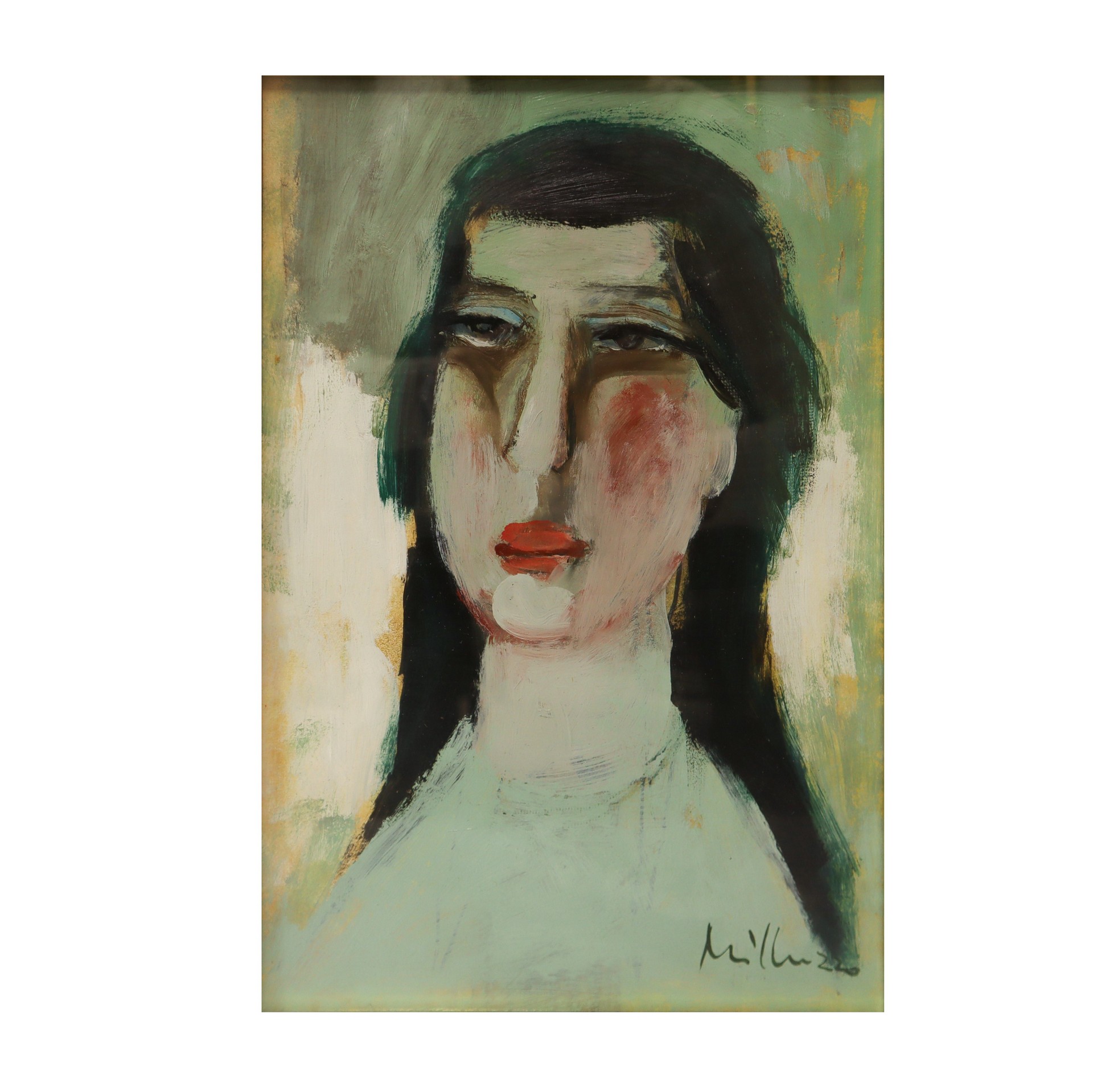 Sebastiano Milluzzo (Catania 1915 - Catania 2011) - Volto di donna h cm 33X23 in cornice h cm 58X48 olio su tavola