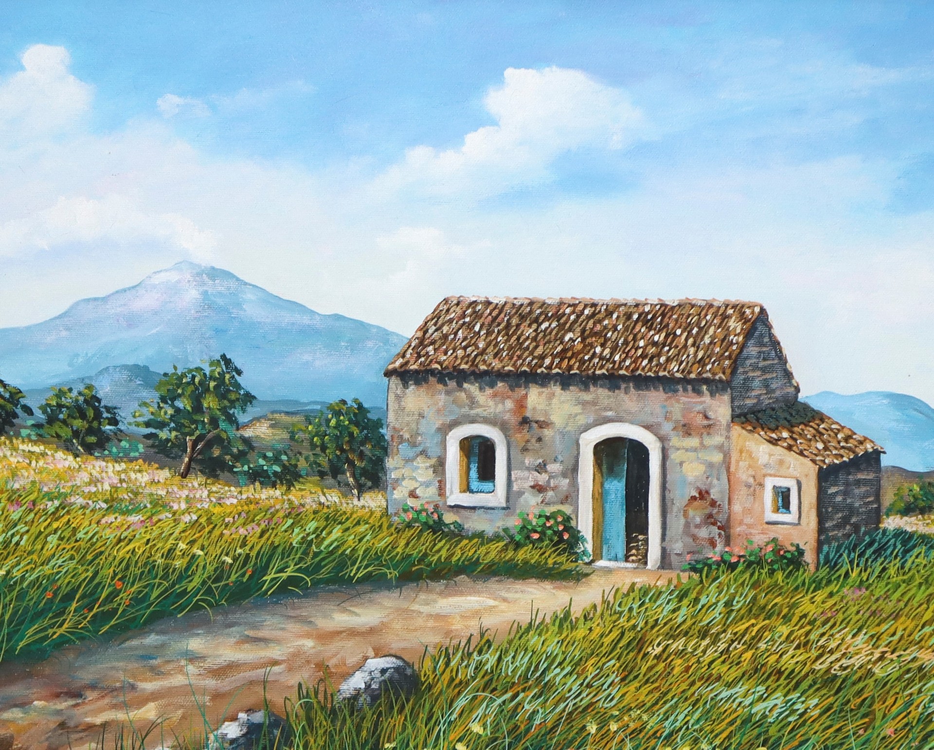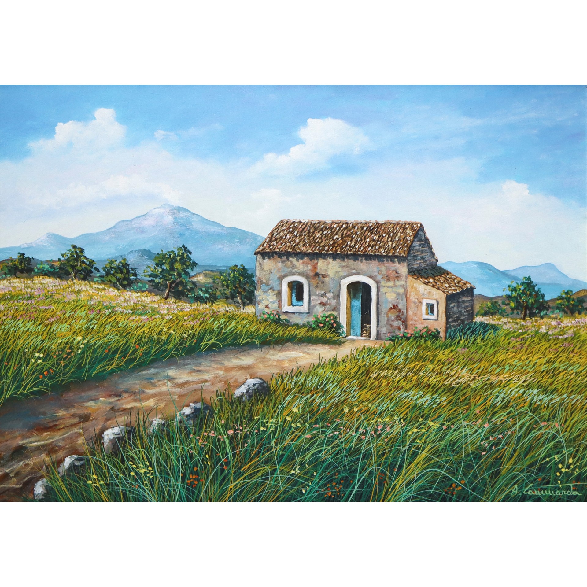 Antonio Cammarata (Augusta 1962) - Primavera sull'Etna, 2002 cm 50x69,5, in cornice cm 67,587 Olio su tela