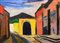 Giovanni Alicò (Catania 1906 - Milano 1971) - Strada di paese con case (Aci Sant'Antonio) ed Etna in prospettiva., 1958