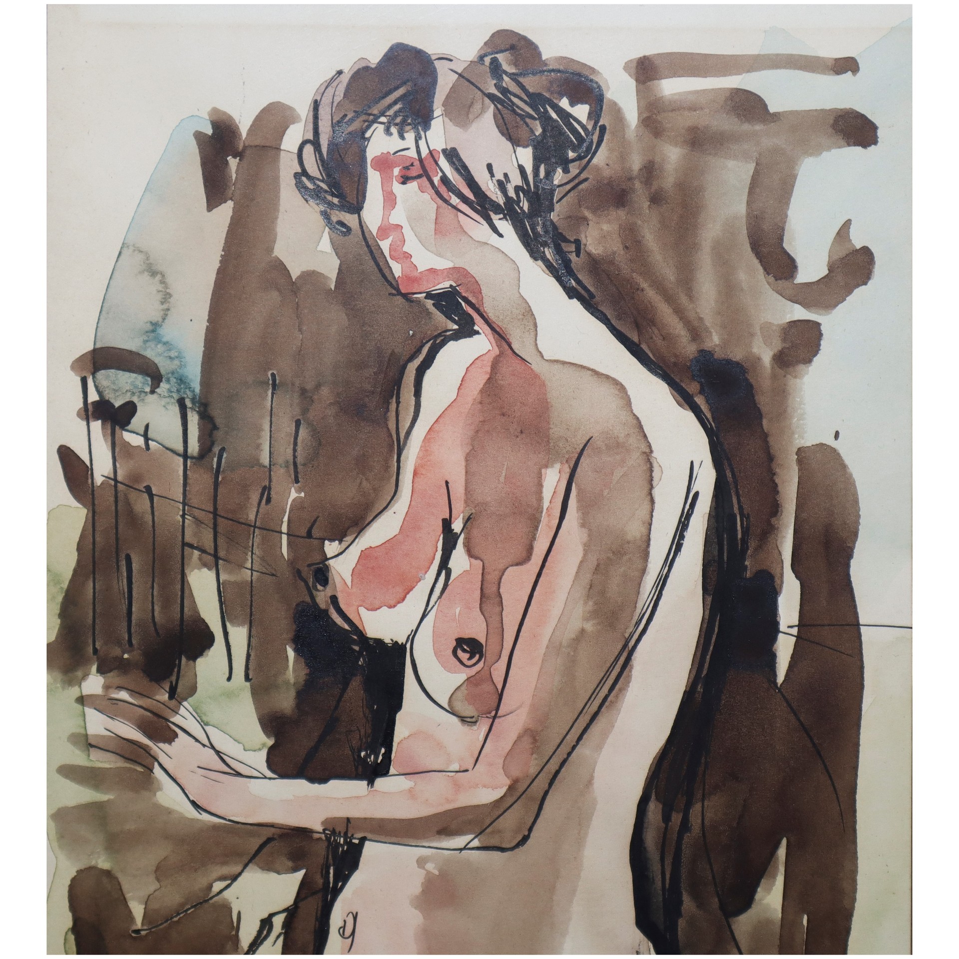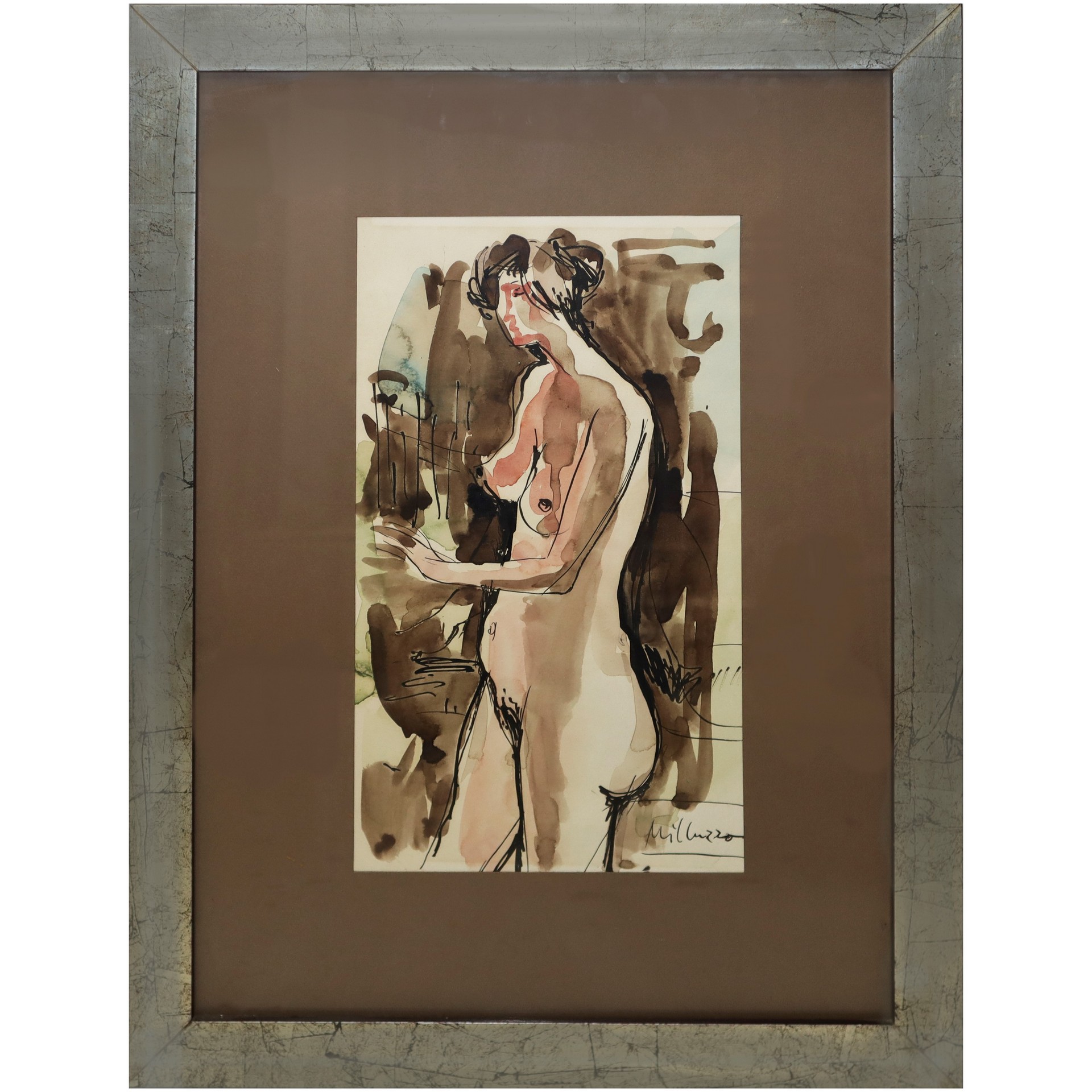 Sebastiano Milluzzo (Catania 1915 - Catania 2011) - Nudo di donna cm 34x20, in cornice 56x42 Acquarello su cartoncino
