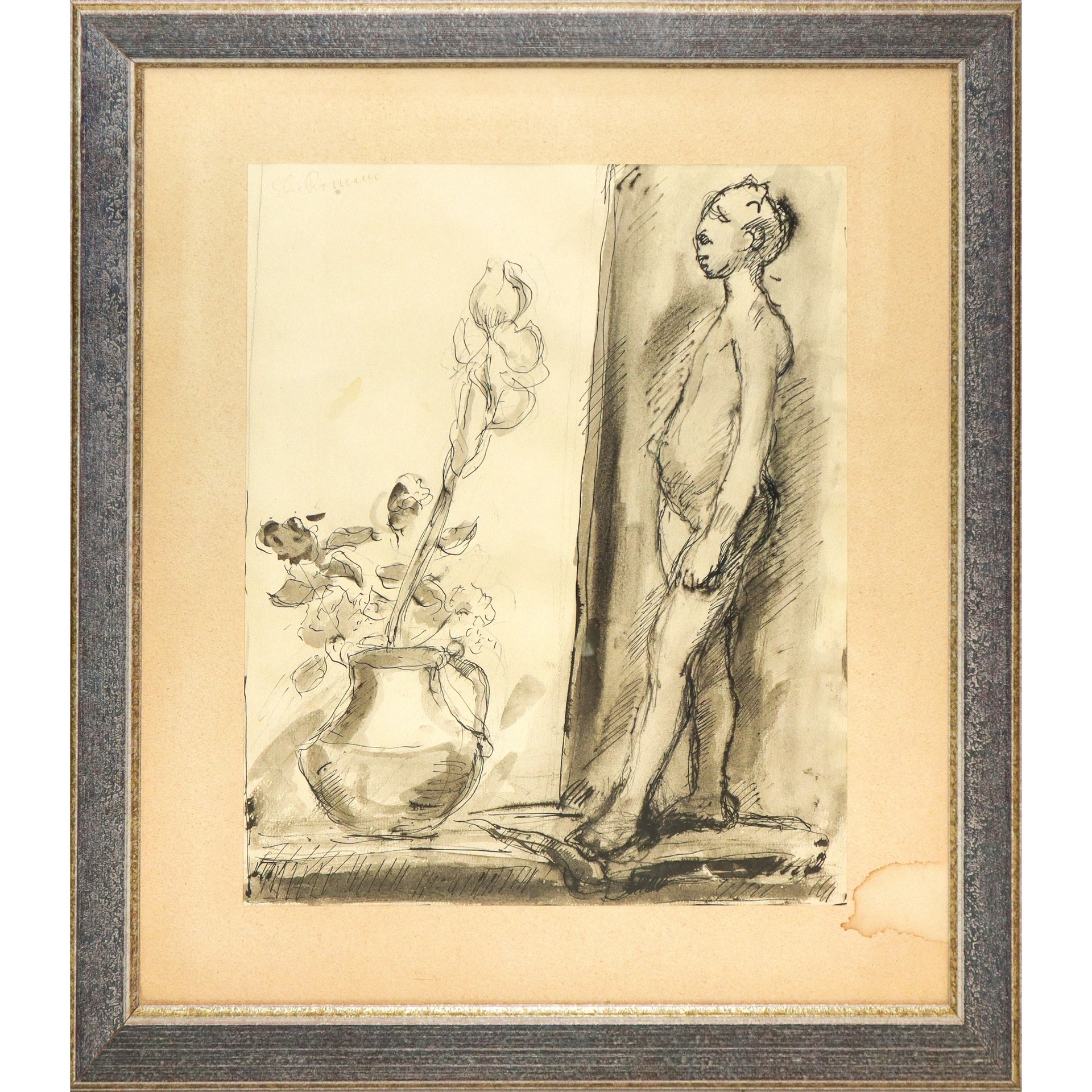 Lot 203 | Elio Romano (Trapani 1909 - Catania 1996) - Uomo con vaso di fiori