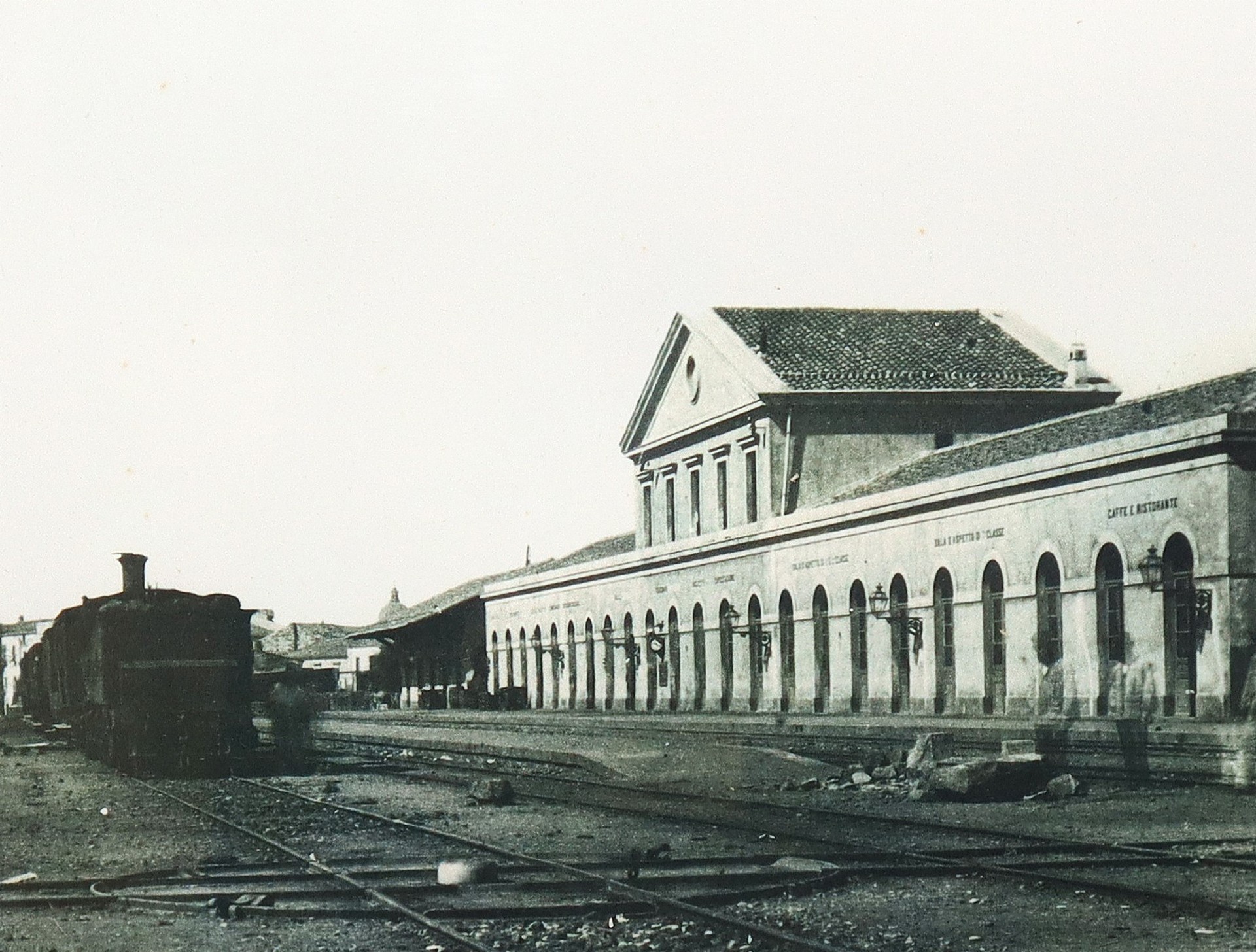 Riproduzione fotografica della stazione di Messina h cm 30X42 in cornice h cm 44X52