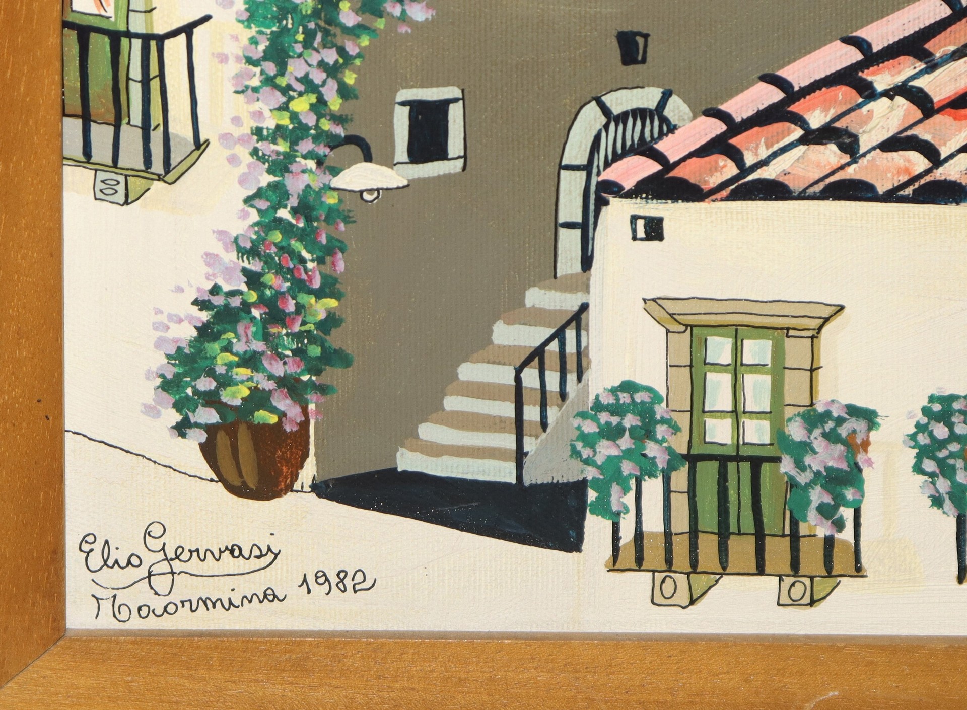 Elio Gervasi (XX secolo) - Vicoli di Taormina, Taormina 1982 h cm 50X60 in cornice h cm 74X83 olio su tela
