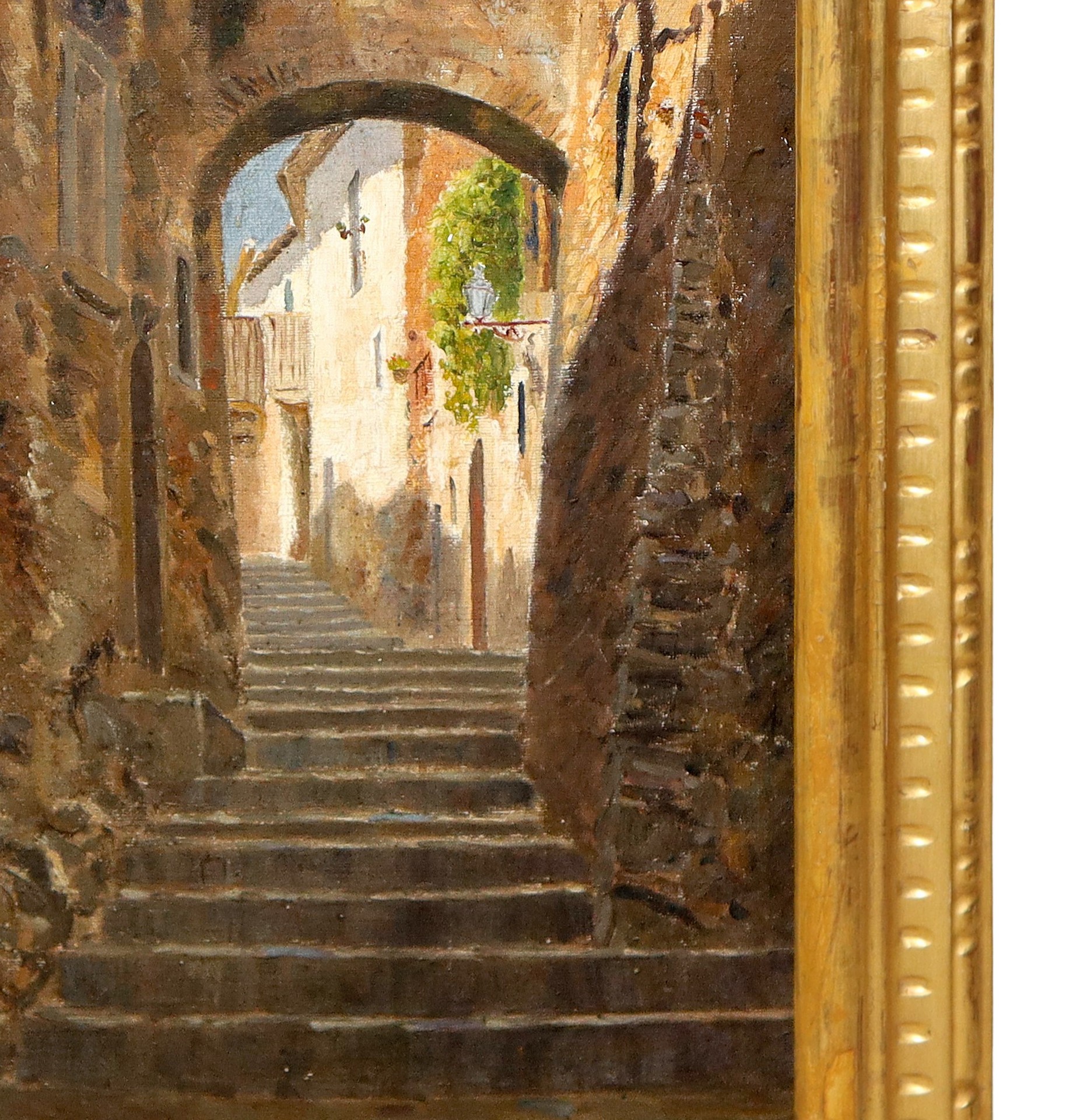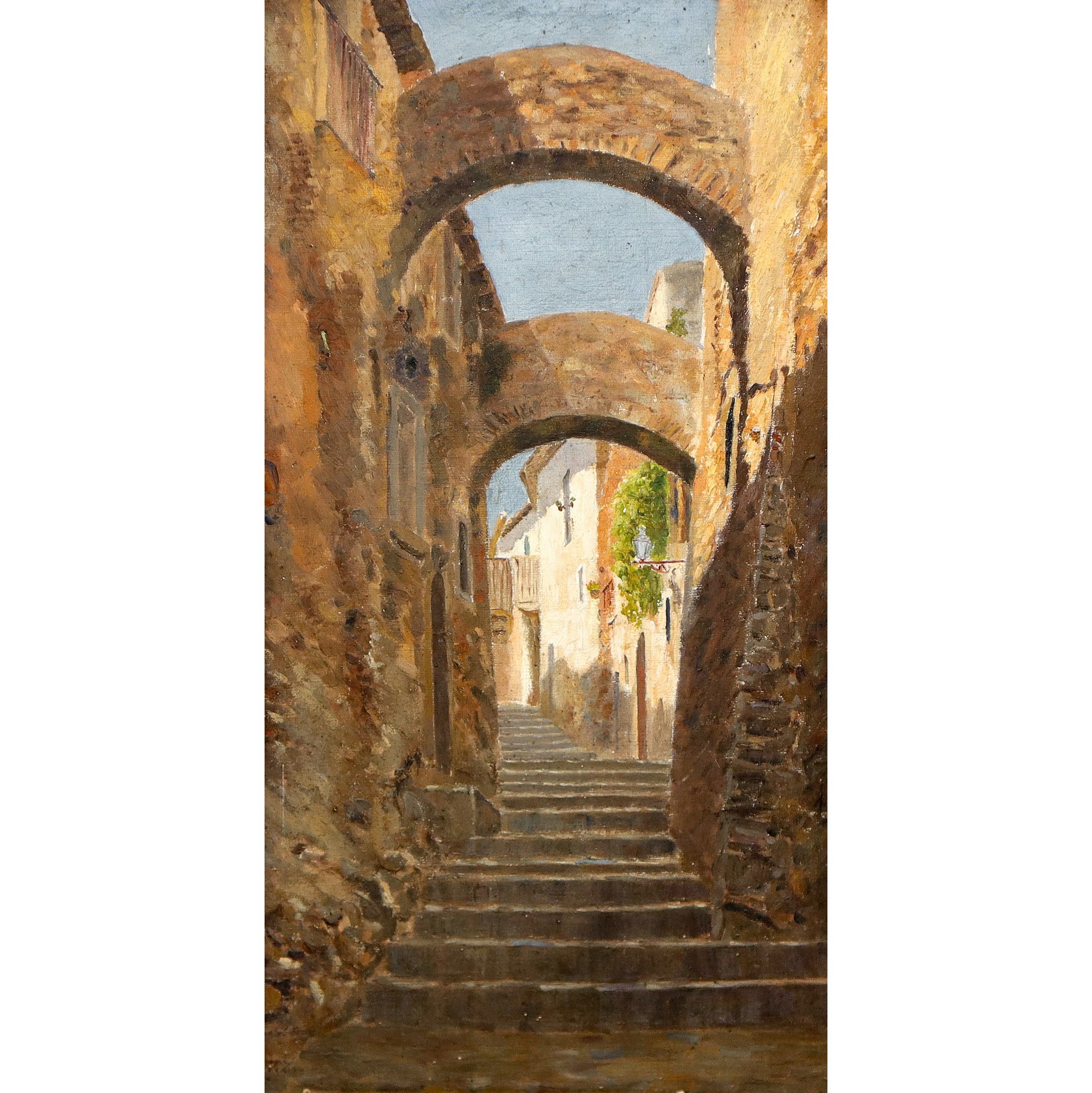 Piero Zuccaro (Catania 1967) - Vicolo De Luna, Taormina h cm 50X26 in cornice h cm 58X34 olio su tela Firmato in basso a sinistra Questo lotto è soggetto a diritto di seguito
