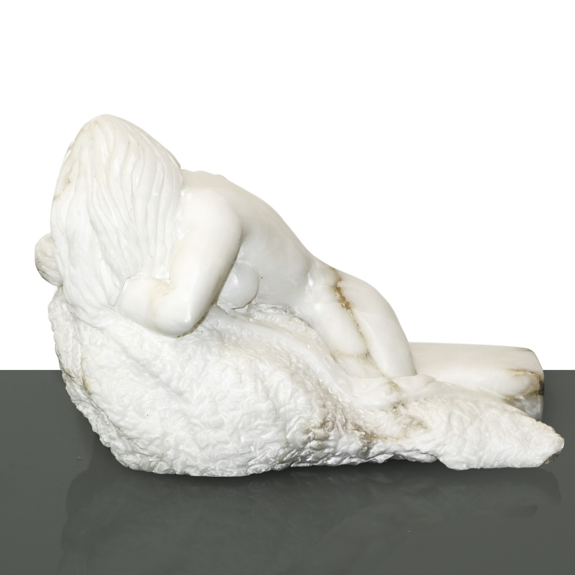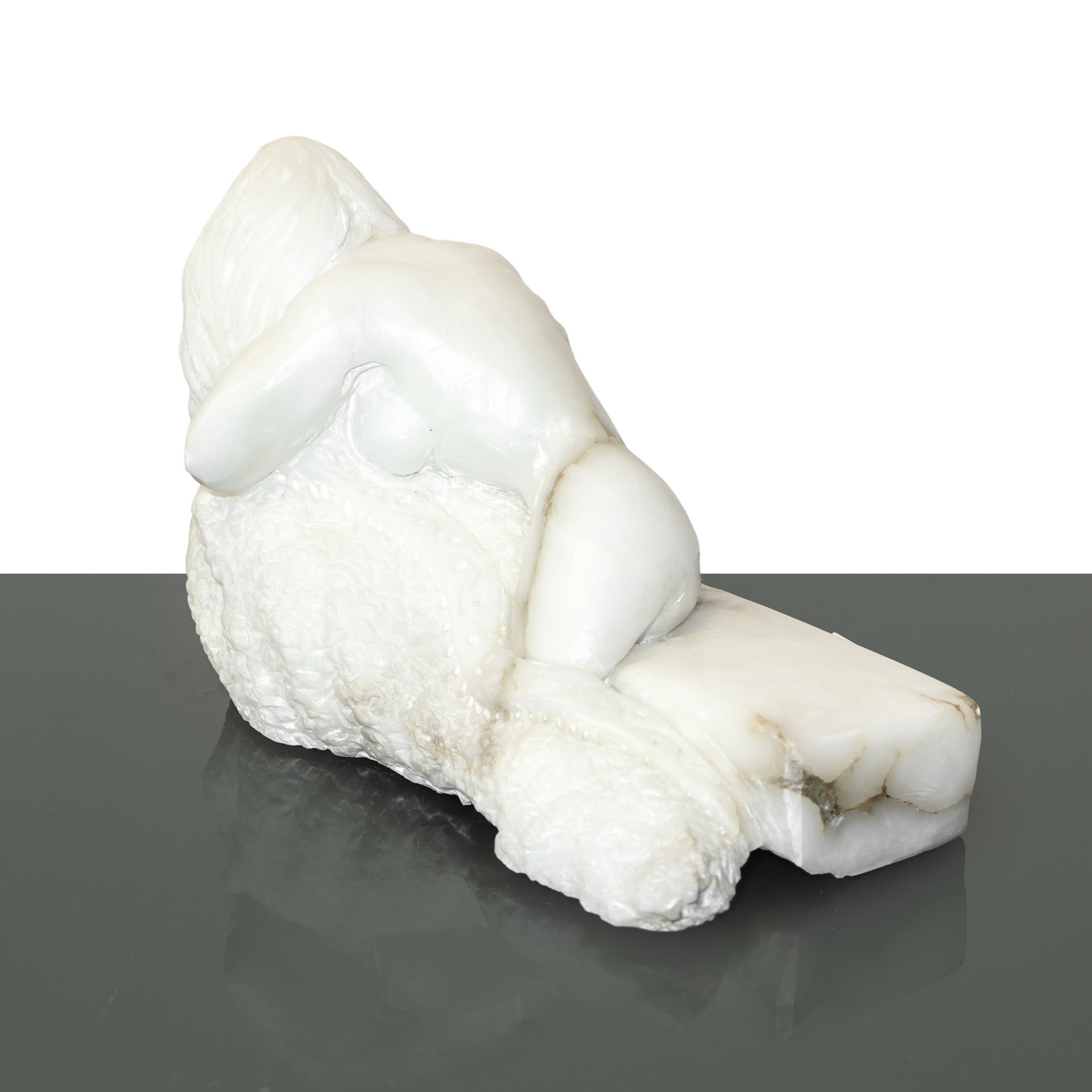Michele Valenza (Villalba 1950) - Nudo di donna sdraiata di schiena h cm 19,5X31 marmo alabastrino siciliano Firmato in basso Questo lotto è soggetto a diritto di seguito