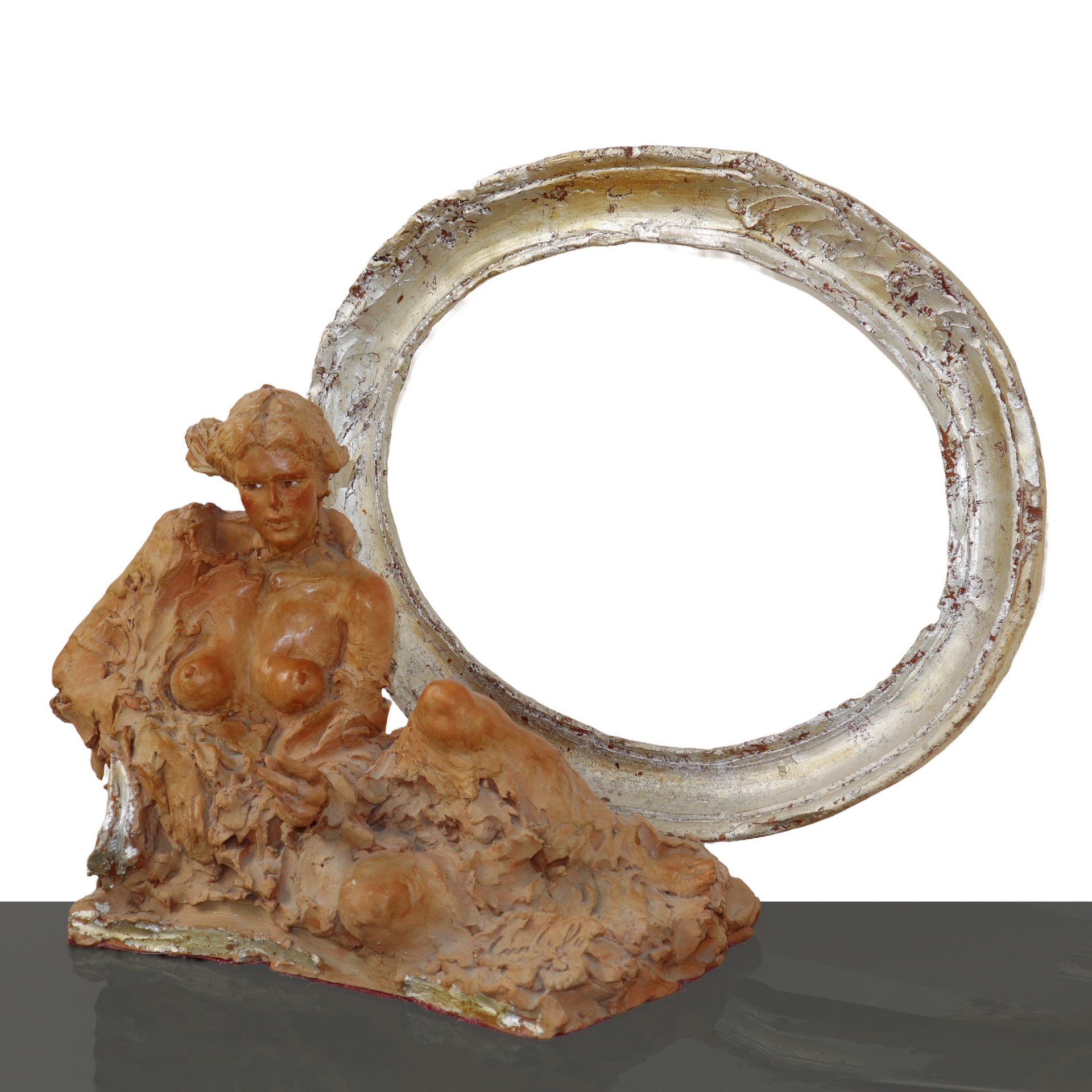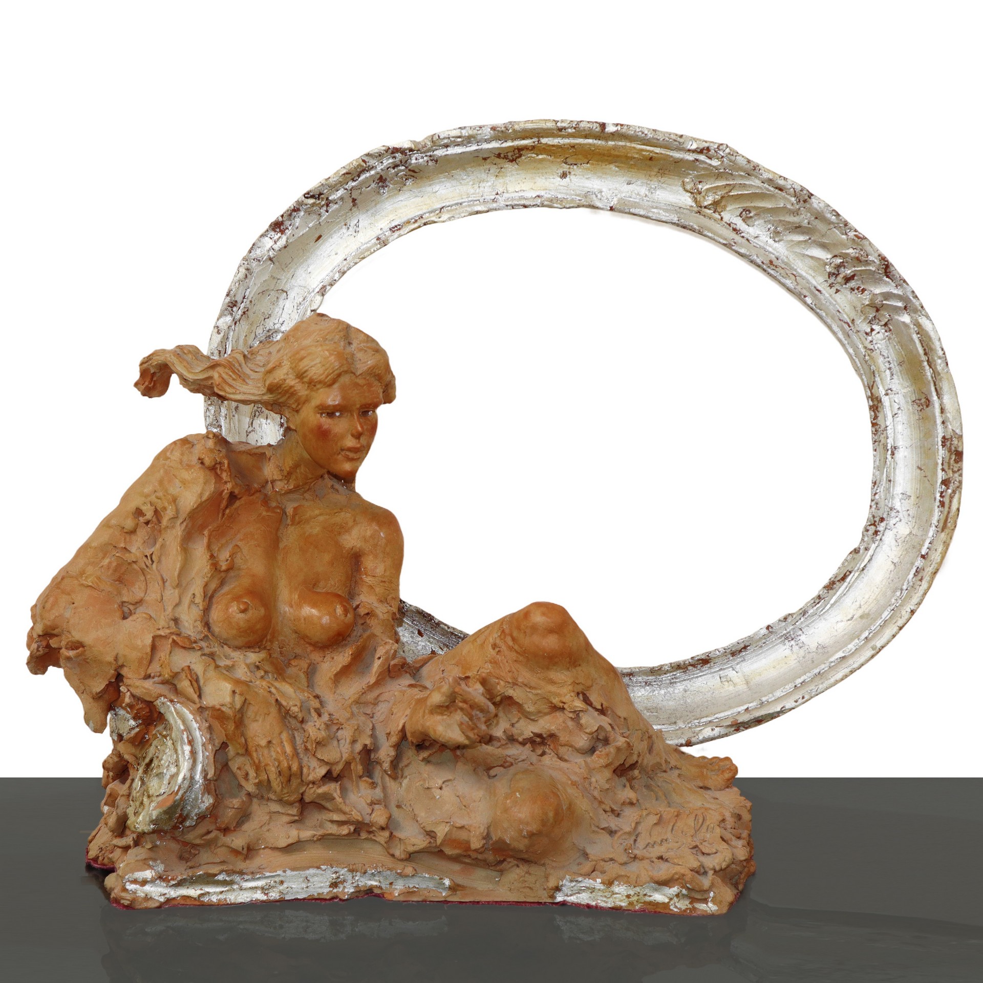 Dino Cunsolo (Biancavilla 1944) - Nudo di donna H cm 49x65 Terracotta patinata con argento Firmato nella parte destra. Un dito è incollato. Questo lotto è soggetto a diritto di seguito