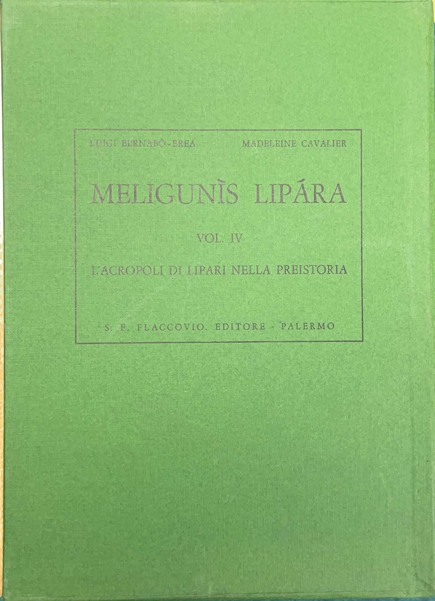 Meligunìs Lipàra (volume IV), 1960 h cm 29,5X21 L'Acropoli di Lipari nella preistoria, cofanetto composto da tre volumi: atlante, tavole, testo.