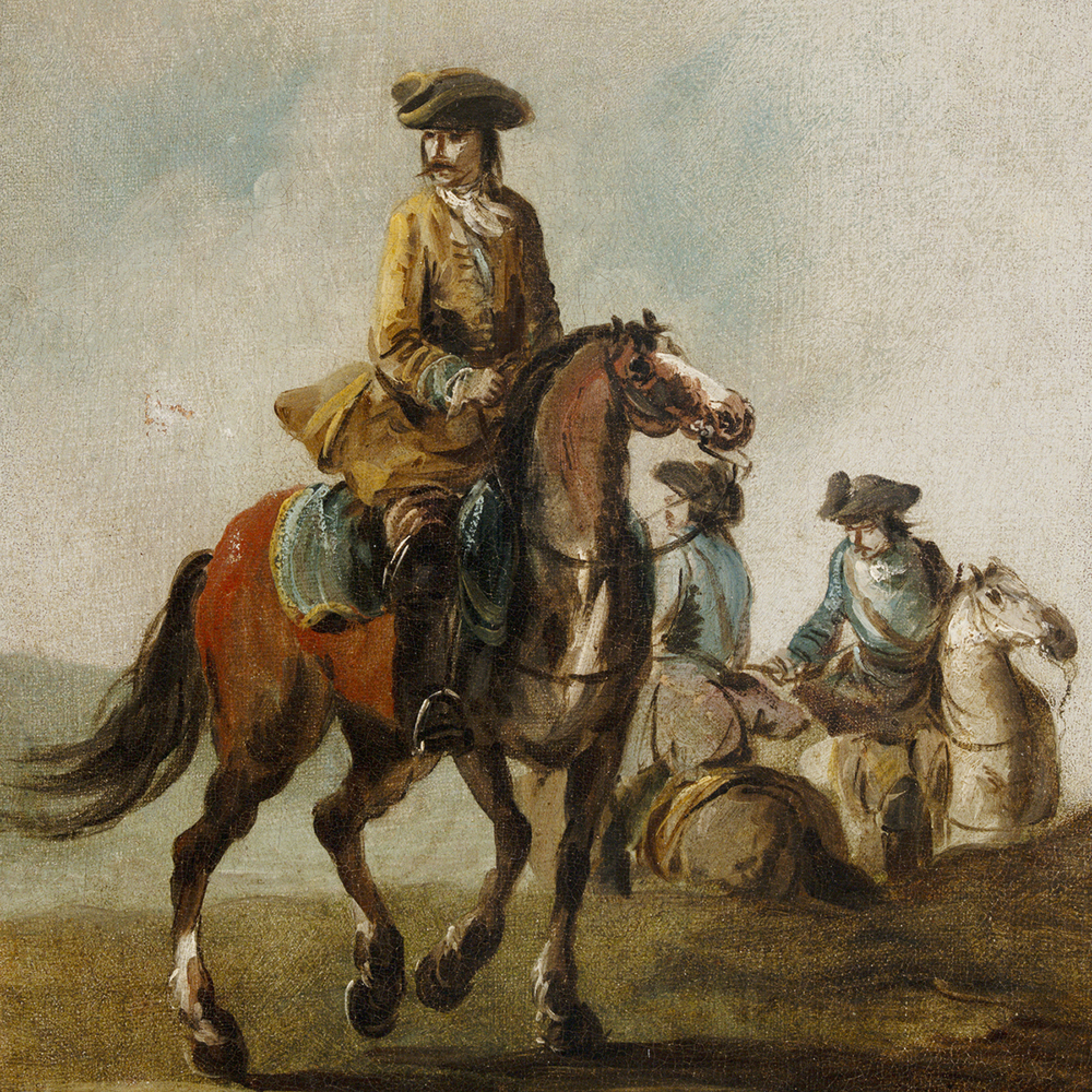 Previously attributed to Giuseppe Zais, with whom he is often confused, the work should be attributed to Francesco Simonini due to the distinctive simplicity of the landscape. Furthermore, the work is very similar to Cavaliere turco published in G. Sestieri, Pittori di battaglie, p. 468, photo 28.