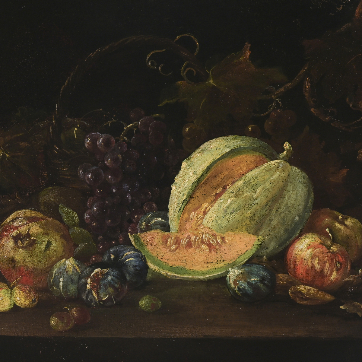Natura morta con frutta, uva e melone - Natura morta con frutta, uva e anguria