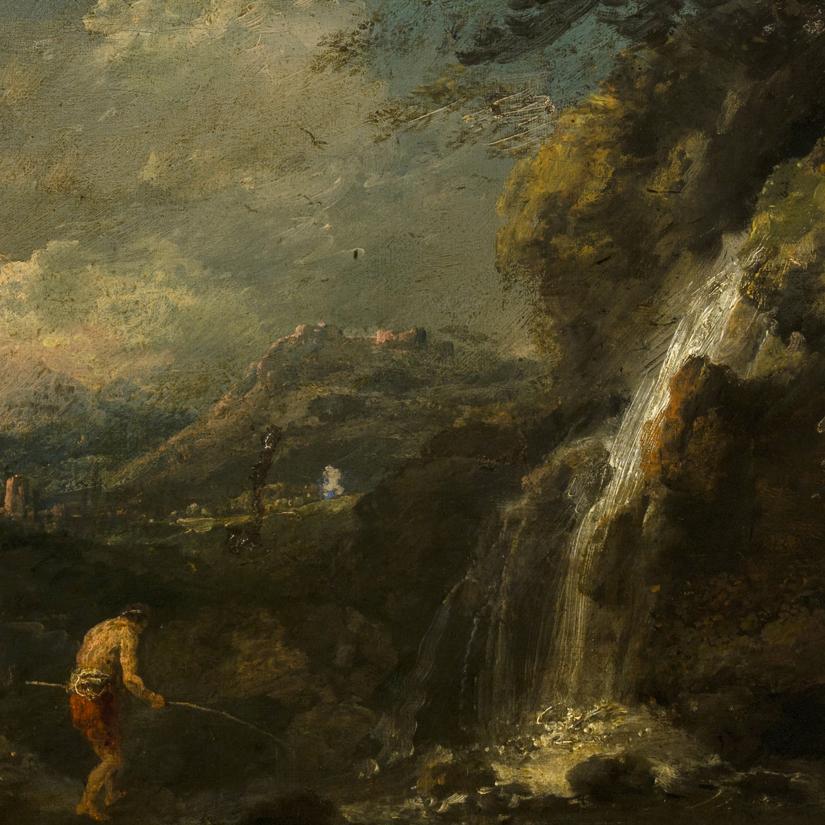 He explored this landscape motif in two other paintings entitled Landscape with a Waterfall, now respectively in the Accademia Carrara, Bergamo, and in the Egidio Martini Picture Gallery at Ca’ Rezzonico (Museum of the Eighteenth Century), Venice. In light of the dating proposed by scholars for these two works, the present painting can be assigned to the period between 1745 and 1760.