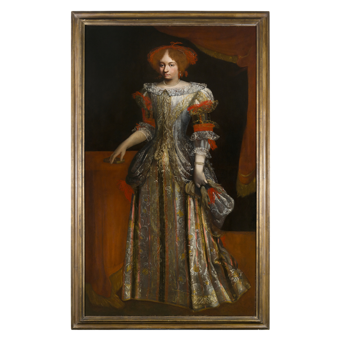 L'opera, osservando le eleganti vesti, si colloca nell'ultimo quarto del XVII secolo. In particolar modo è prossima a Carlo Ceresa di cui possiede la posa e la sobrietà dell'insieme. Però l'effetto dei tessuti, che riverberano di chiarori metallici, e il volto levigato dalla luce, ricordano il famoso Ritratto di Tommaso Campeggi e famiglia di Pier Francesco Cittadini detto il Milanese, dal quale la nostra effigiata coglie anche lo sguardo impassibilmente serioso e la mano sinistra della marchesa Campeggi.