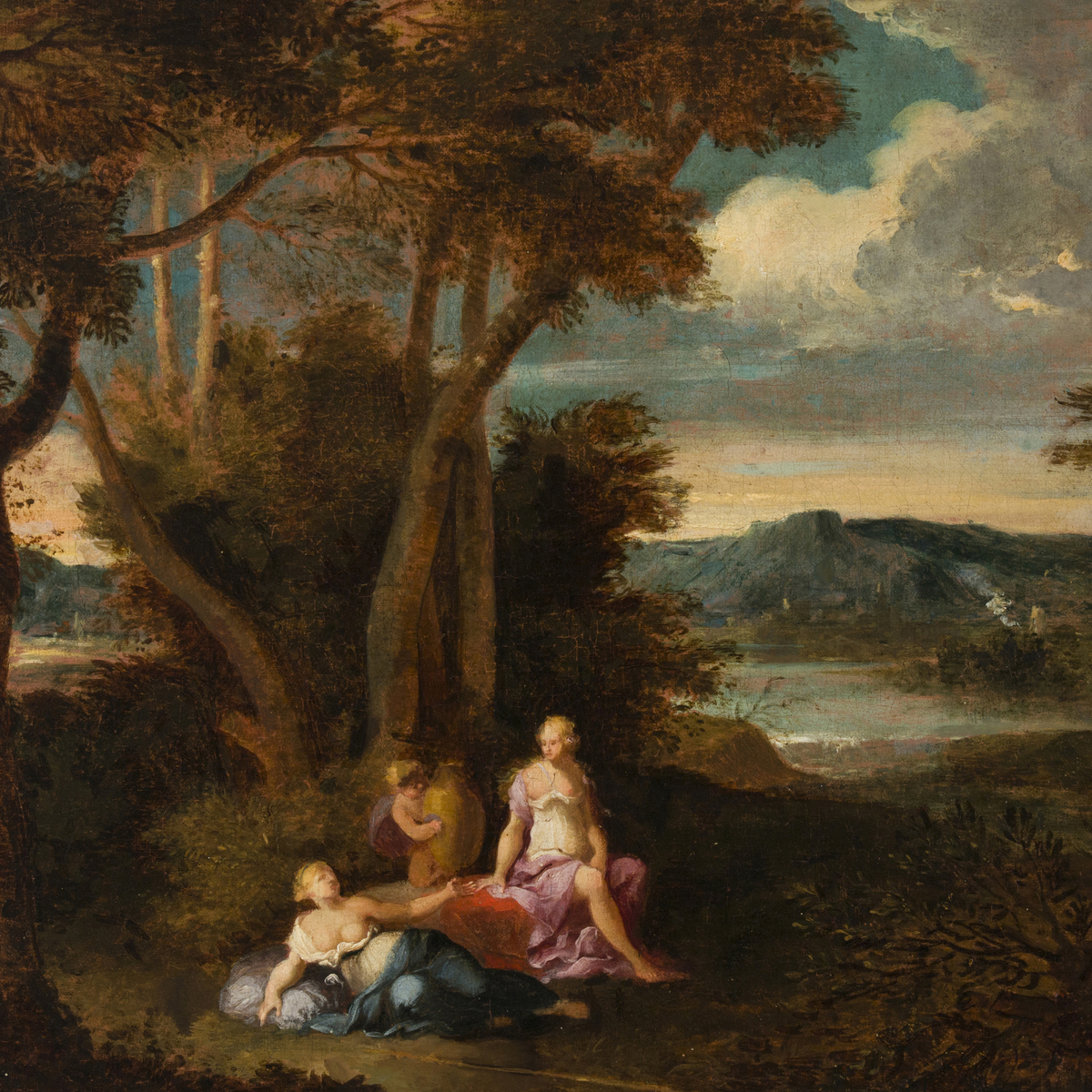 Paesaggio con due ninfe e un amorino