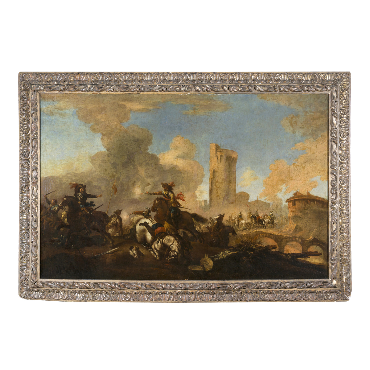 The work reflects the experience of both Bergognone and Michelangelo Cerquozzi, known as Michelangelo delle Battaglie, as evidenced by the horse falling nose-first. Cerquozzi was likely a Flemish or Northern European painter active in Rome around the mid-17th century.