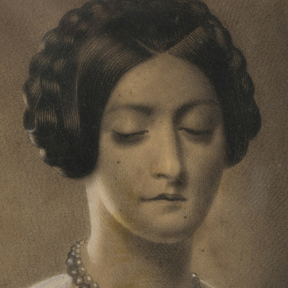 Ritratto di giovane donna con capelli sciolti - Ritratto di giovane donna con collana di perle