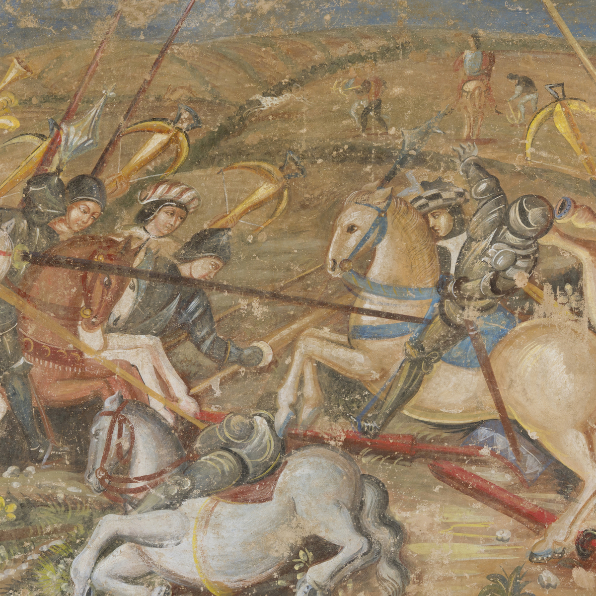 L'opera si ispira liberamente e in forma semplificata, alla Battaglia di San Romano di Paolo Uccello, conservata agli Uffizi di Firenze.