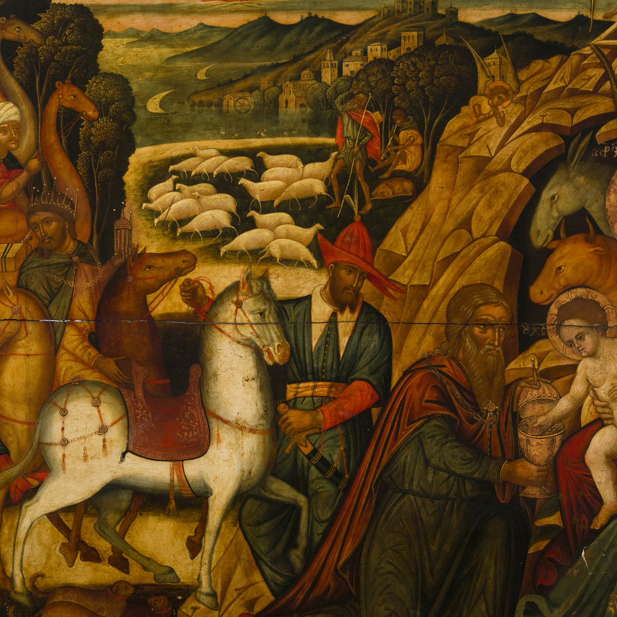 La tavola presenta il linguaggio tipico dei pittori greci e cretesi presenti a Venezia nel XVI secolo. In laguna, visse una grande comunità ellenica, formatasi nei secoli e aumentata ulteriormente dopo la conquista di Costantinopoli ad opera dei Turchi. Con le genti greche arrivarono anche diversi iconografi, i quali si divisero in due filoni nell'intento di soddisfare la grande richiesta di pittura "alla greca". Alcuni di essi, infatti, rimasero legati all’iconografia classica e ortodossa, altri, invece, superarono i rigidi concetti bizantini per esprimersi "alla veneziana" o "all’occidentale", ovvero in una rilettura in stile grecizzante delle opere dei celeberrimi pittori del Rinascimento veneziano. Tra i pittori rimasti legati alla tradizione ricordiamo i Rico (Ritzos) e Damasceno (Damaskinos). Tra i pittori che cercarono una via di assimilazione e fusione delle due scuole pittoriche, fondamentale fu l'esperienza di Ioannes Parmeniaties (Ioannis Permeniotis) italianizzato in Giovanni Permeniate. Di Ioannis non abbiamo notizie biografiche, mentre è documentato che fu membro della Confraternita Greca di Venezia nel 1523. Due sue opere, la Vergine col Bambino e il Cristo Salvatore, firmate in greco, sono esposte nel Museo Bizantino di Kastoria. Un'altra, firmata in latino, è conservata al Museo Correr di Venezia; altre non firmate sono conservate in diversi musei, tutte accomunate dalla sua caratteristica quinta paesaggistica. La sua arte pittorica è fortemente influenzata dalla pittura veneziana del primo Cinquecento, soprattutto nelle sue espressioni paesaggistiche, del tutto estranee alla cultura delle icone greche, care a Giovanni Bellini e alla sua cerchia.