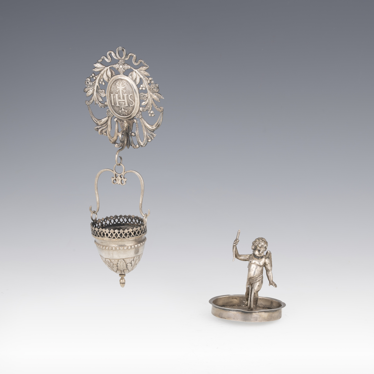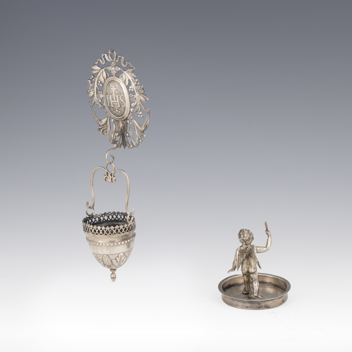 Acquasantiera e bugia in argento, Roma, 1815-1870
