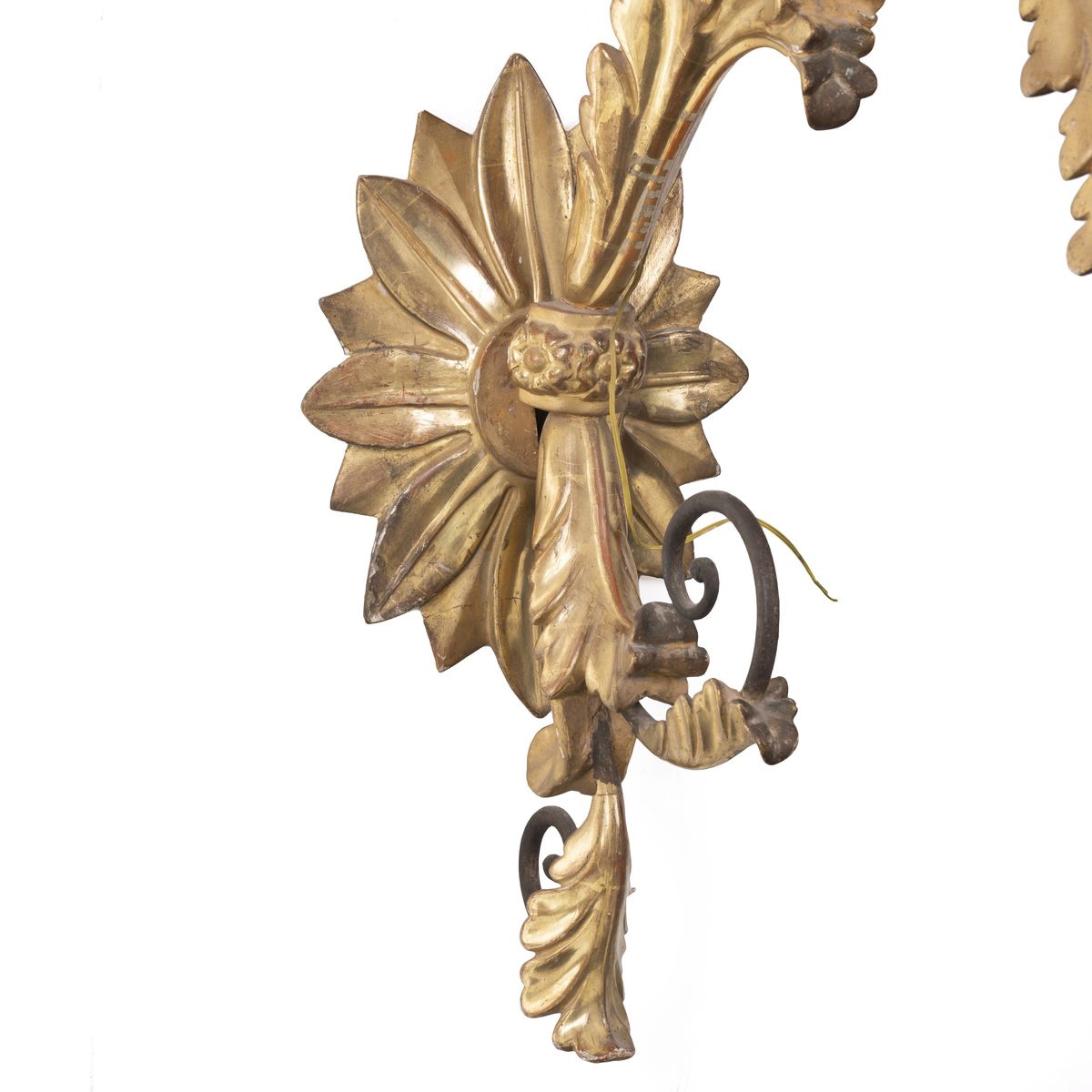 Base a muro e decori fitomorfi di legno scolpito e dorato in foglia oro