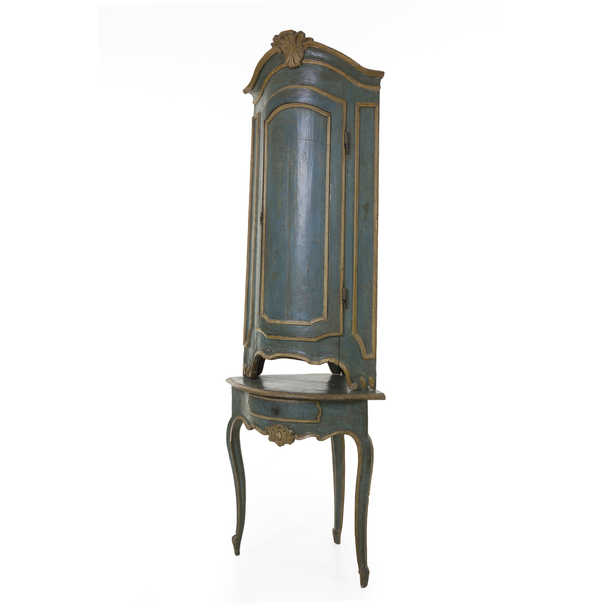 Lower section with drawer in the band and cabriole legs.
