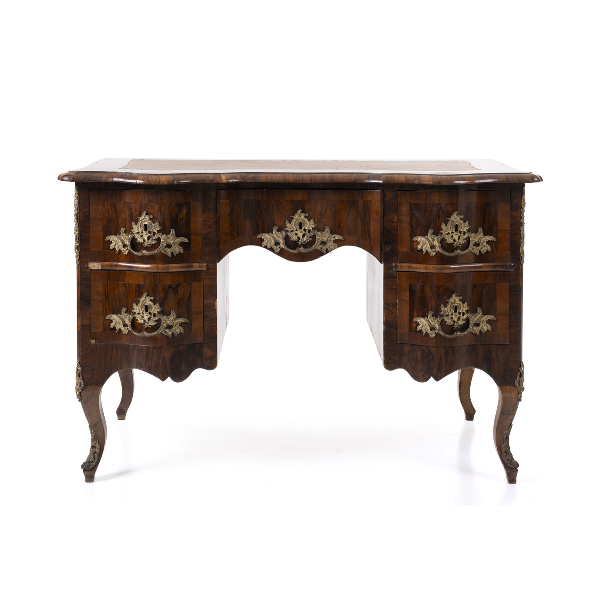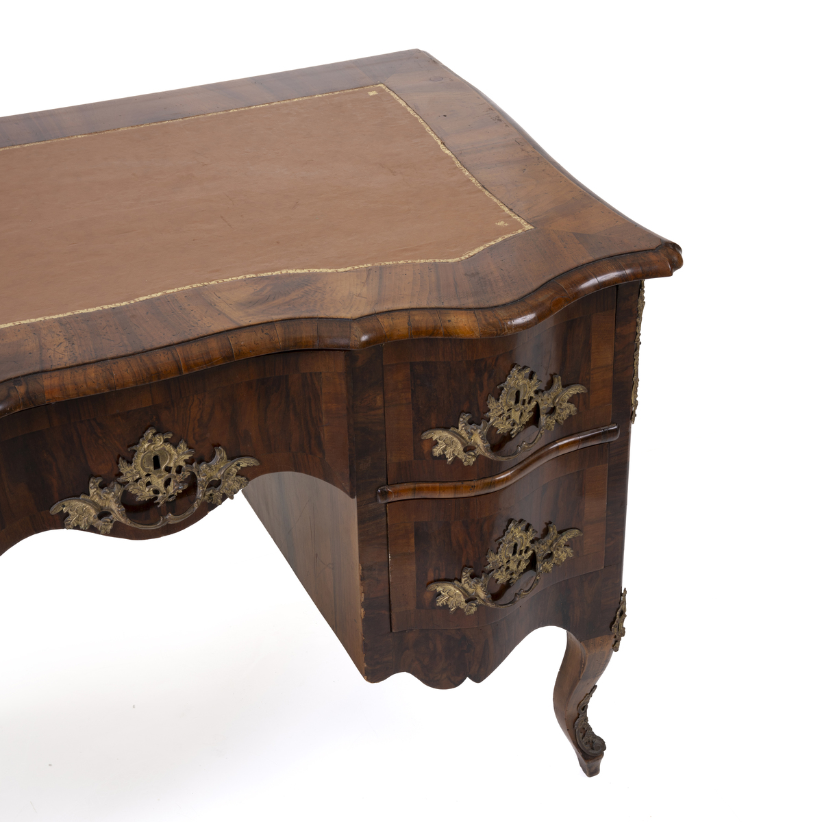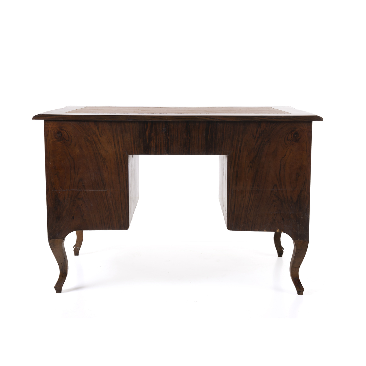 Piano a bordo sagomato con inserto in cuoio non coevo.
