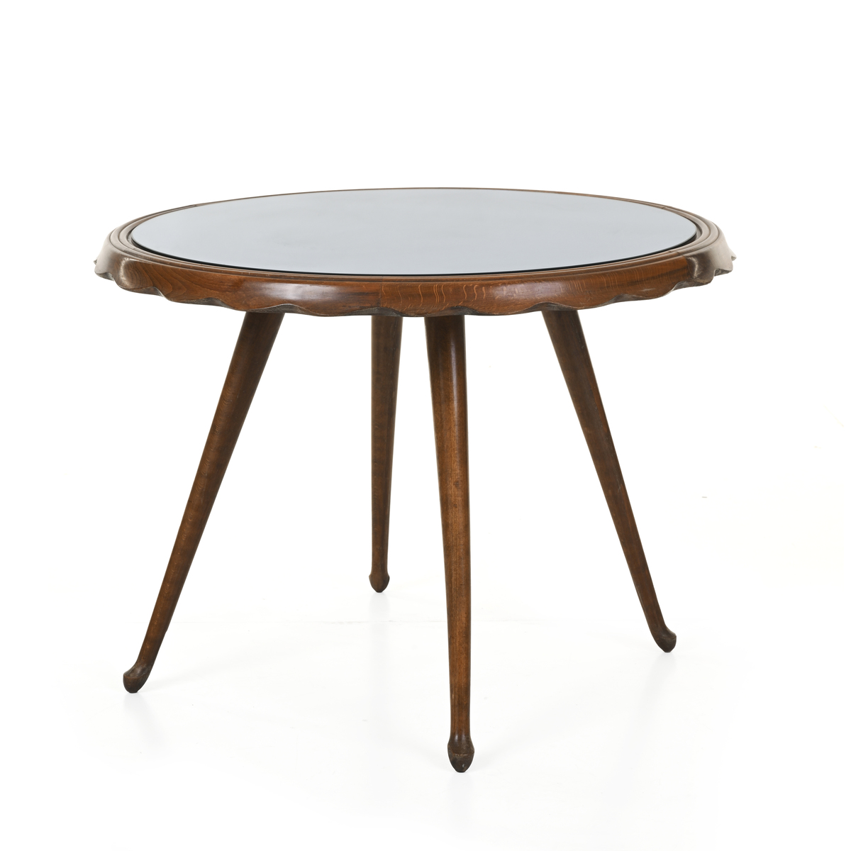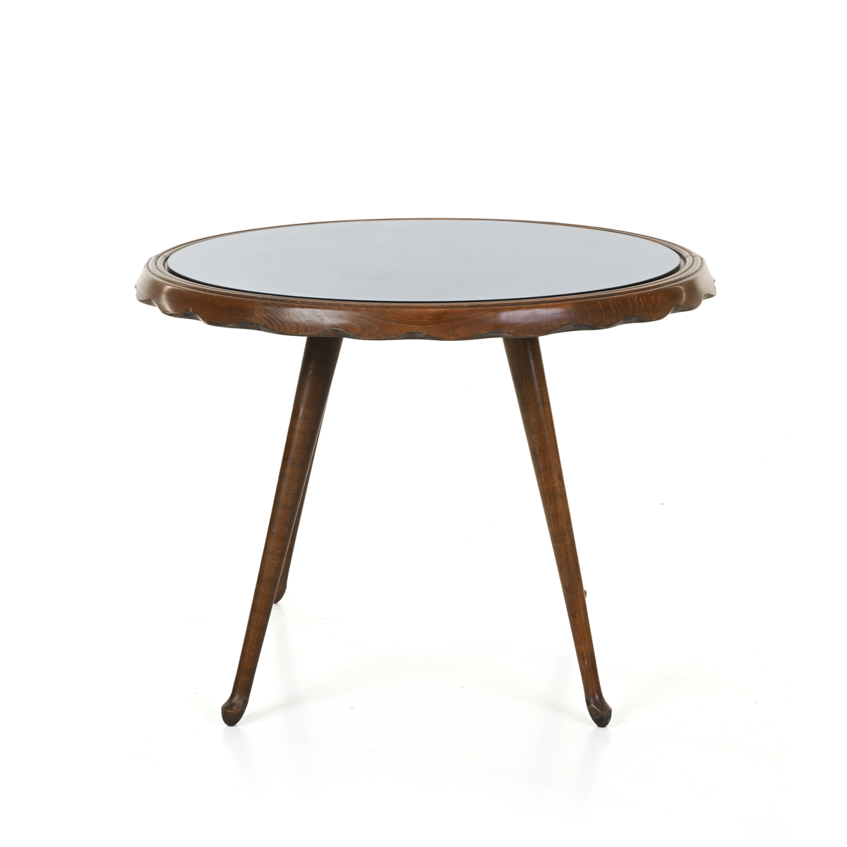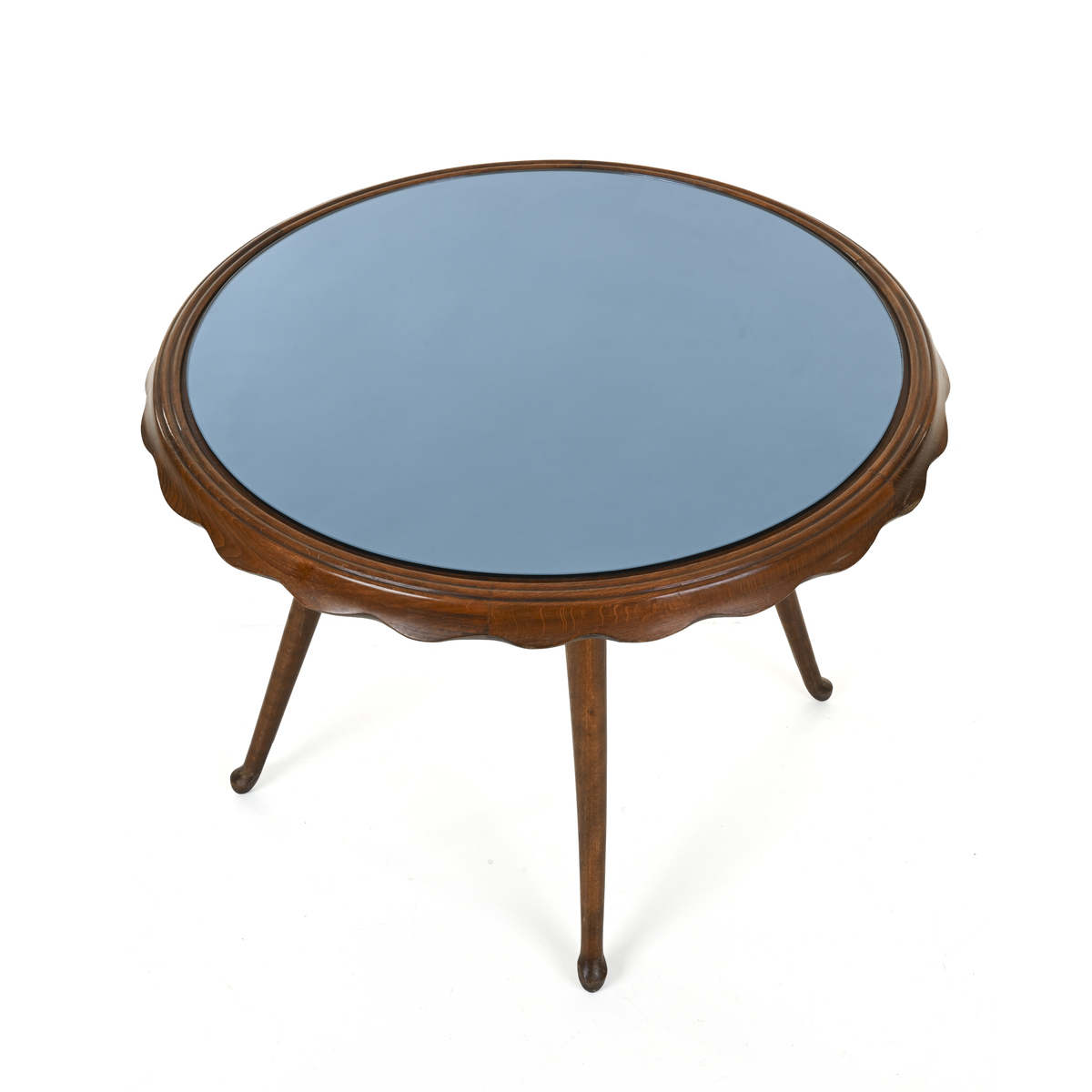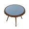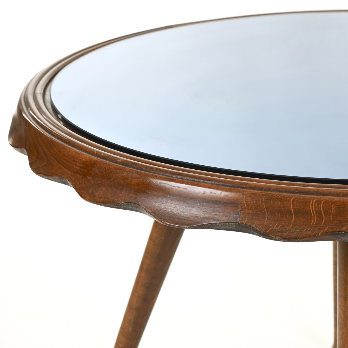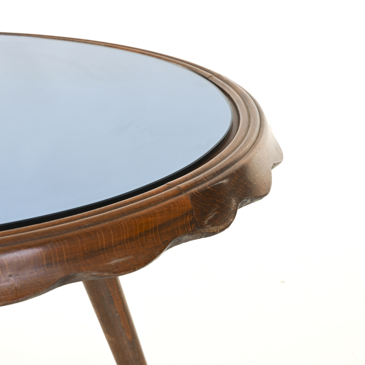 Struttura in legno, piano d'appoggio in cristallo molato e specchiato blu