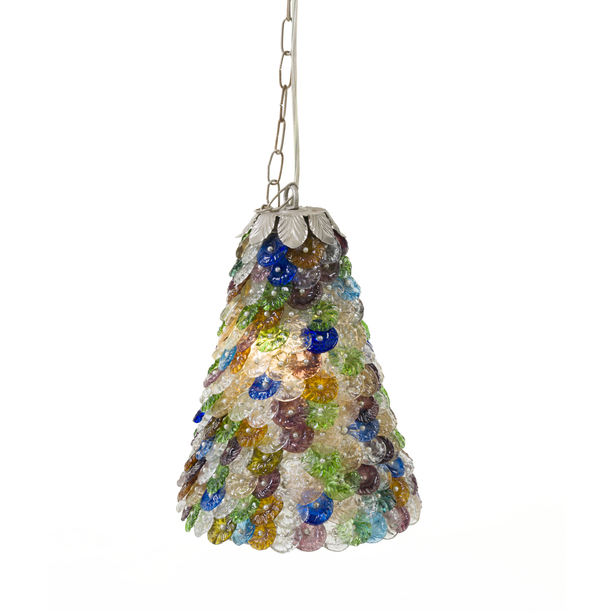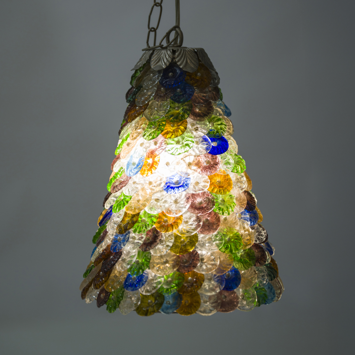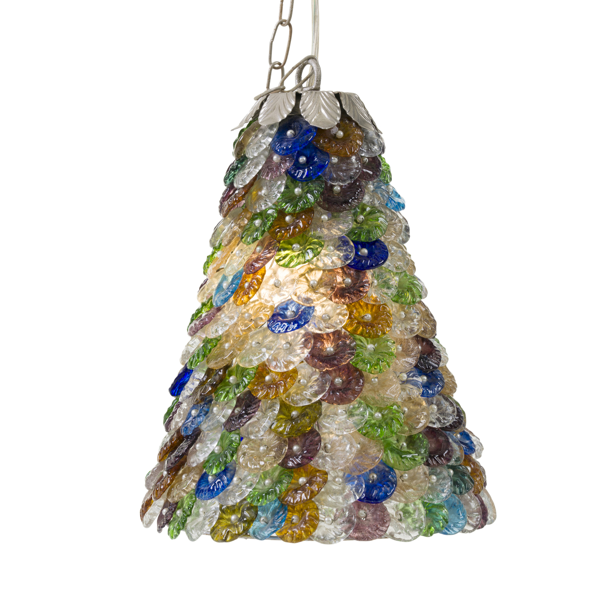 Applicazioni in vetro policromo in forma di fiore, struttura in metallo