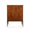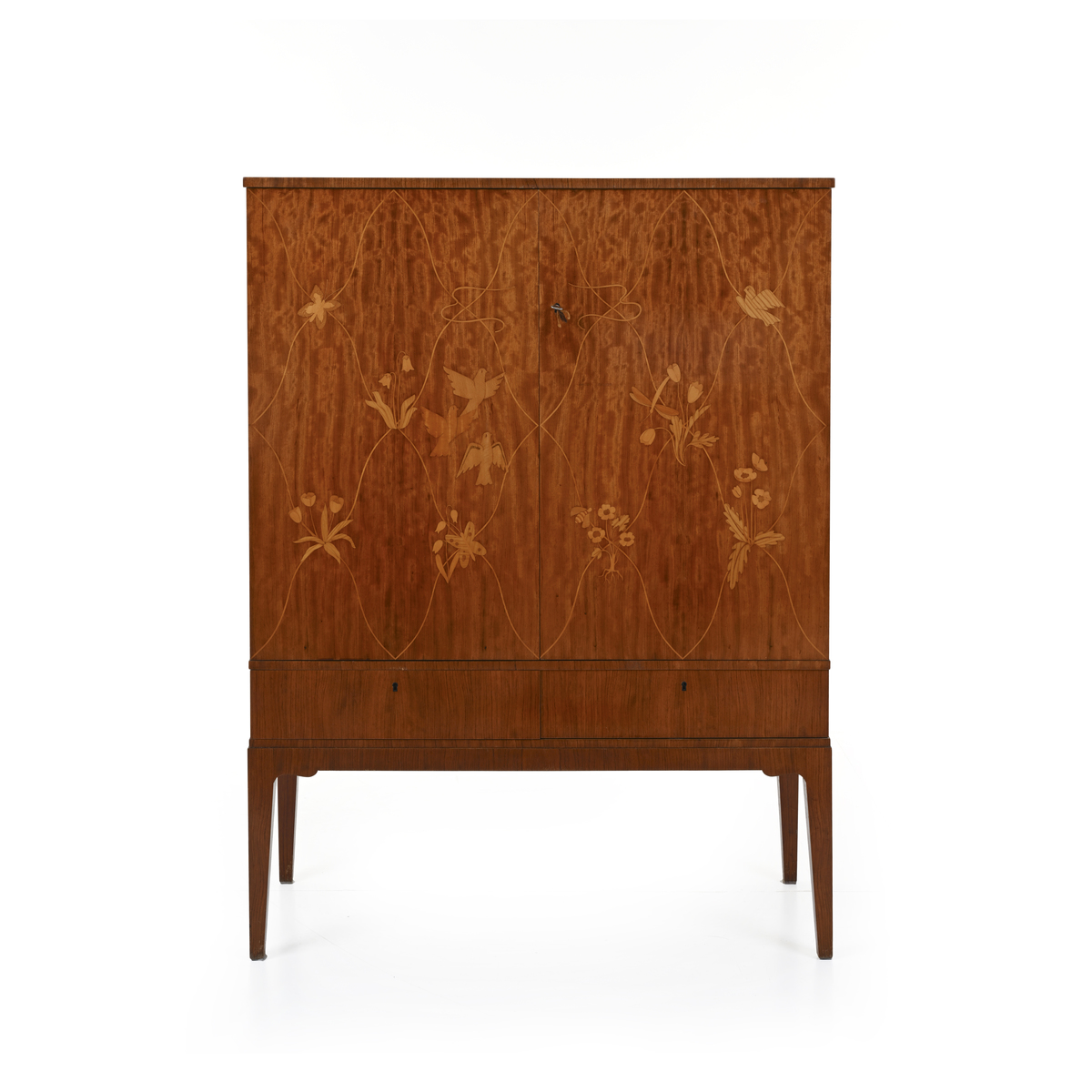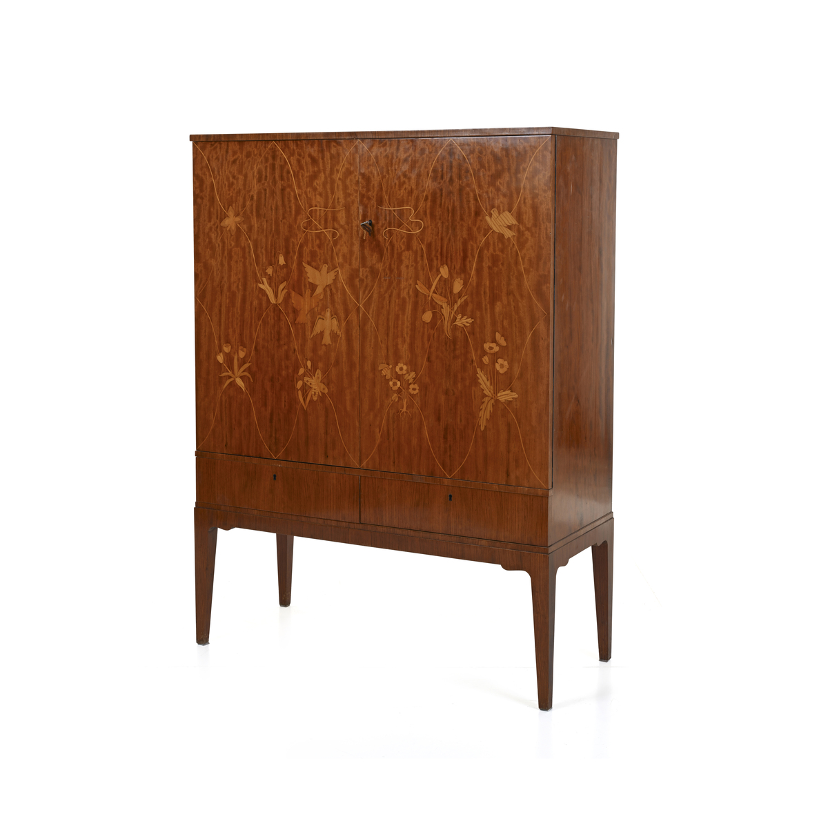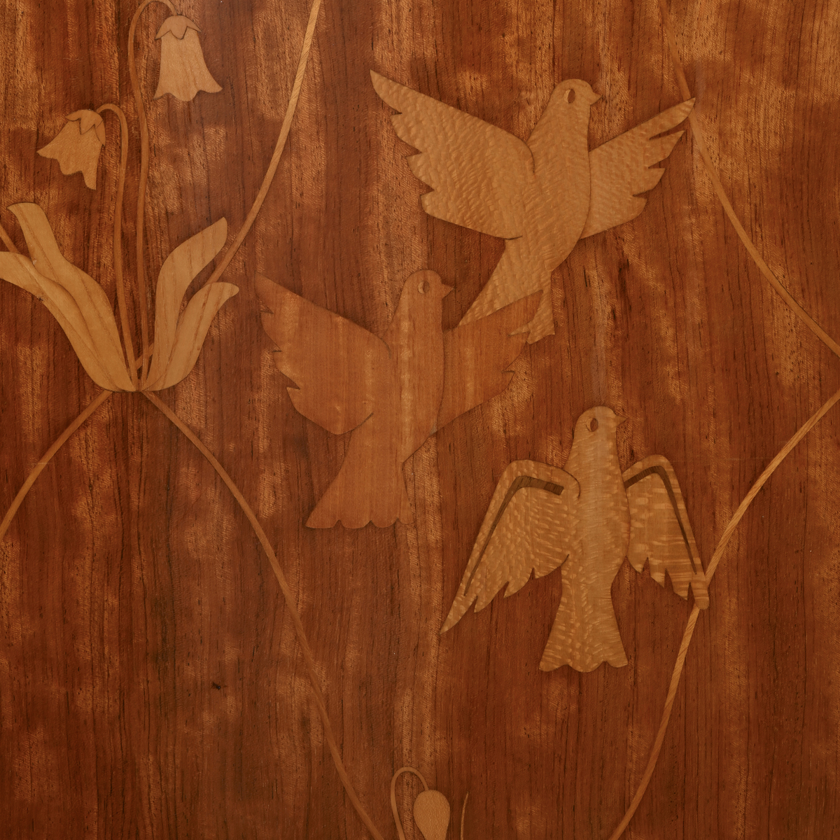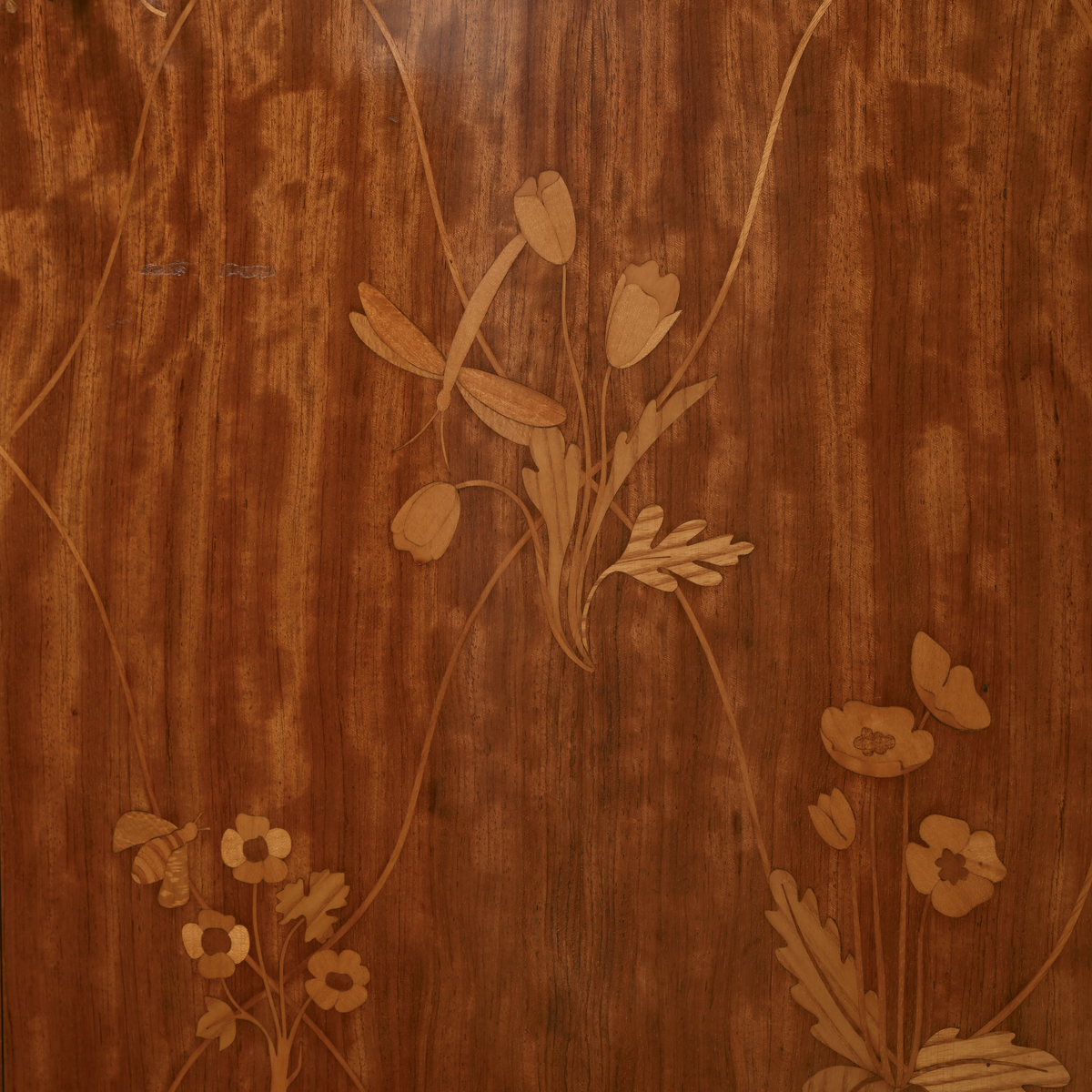 Veneered wood, decorations in various types of wood, and brass details