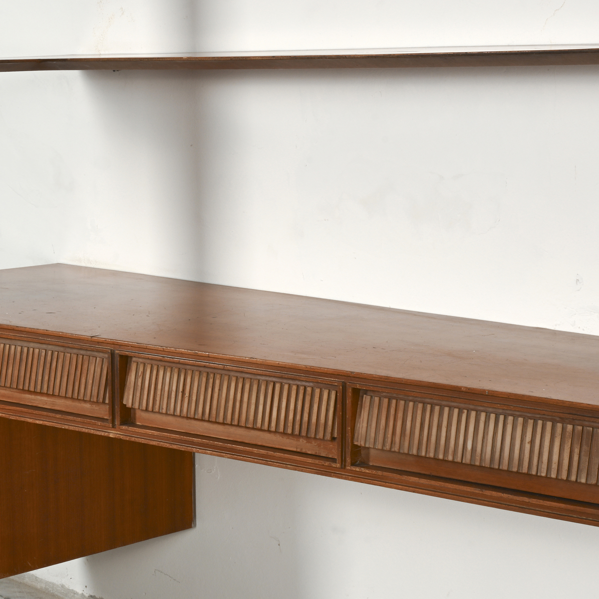 Veneered wood structure, side doors and drawers in reeded wood, brass details